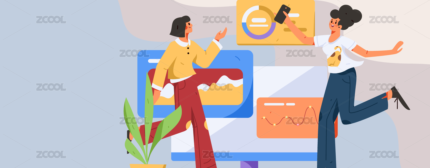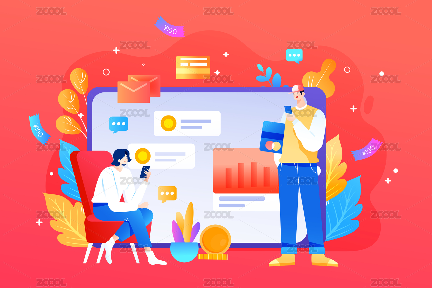 工作的男女2, 矢量扁平人物场景创意概念插画