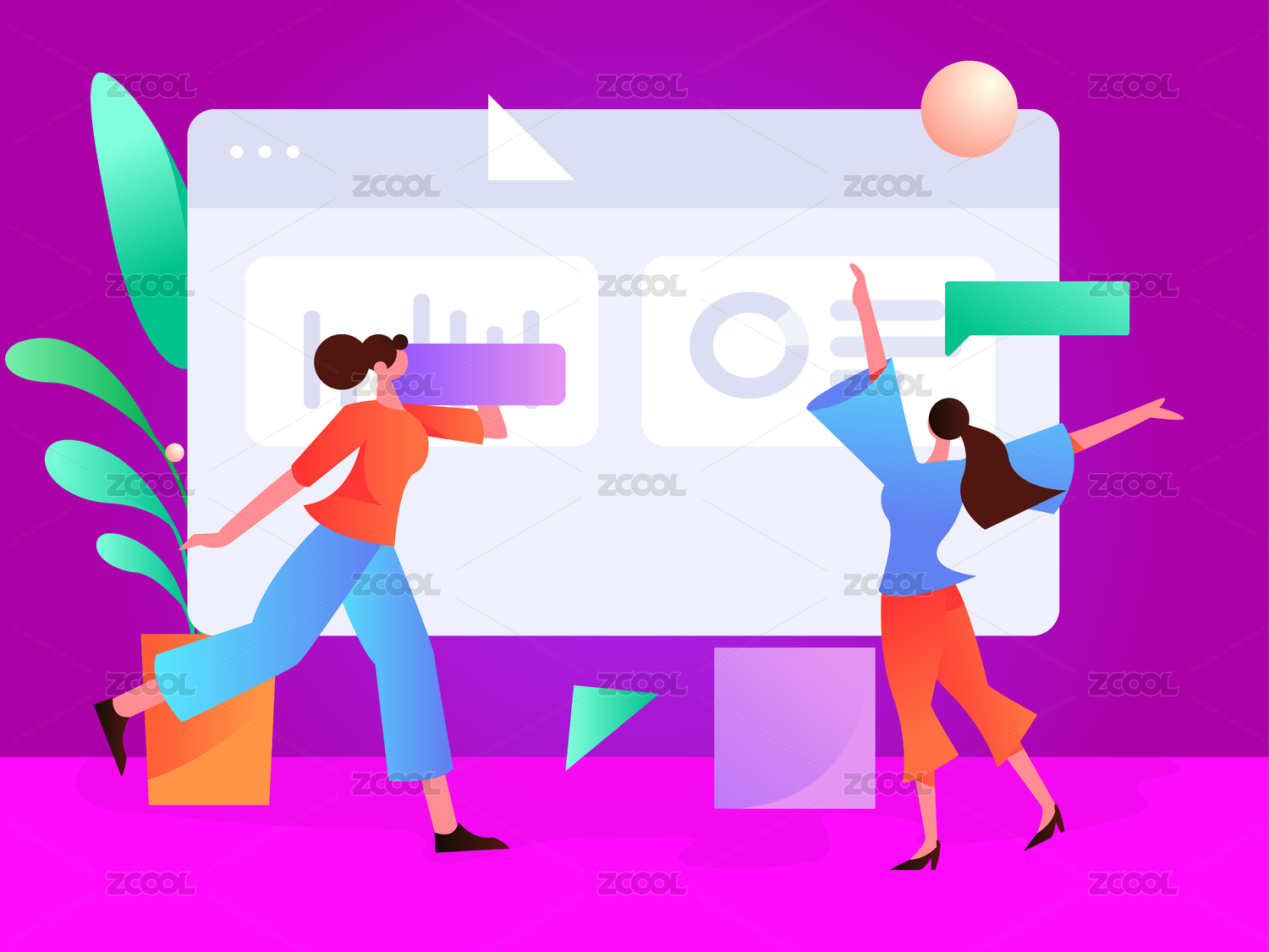 组件化设计 互联网协作的员工高效完成网页内容完成 潮流矢量扁平人物