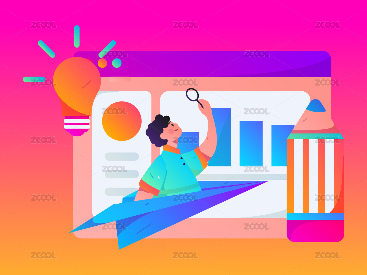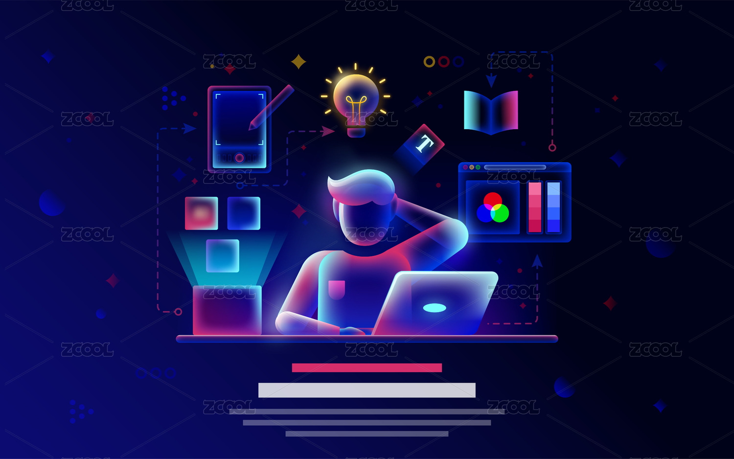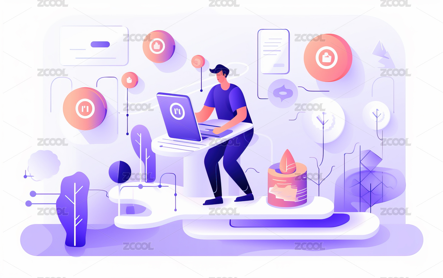 高科技人工智能, 矢量扁平人物场景创意概念插画
