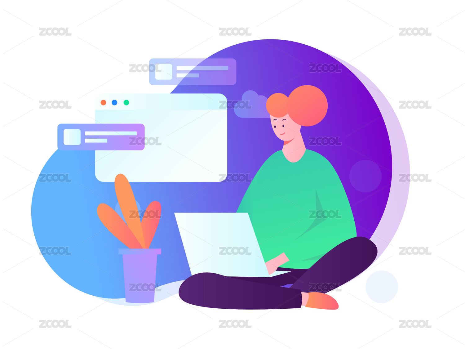 正在上班的女子,扁平矢量人物场景创意概念插画