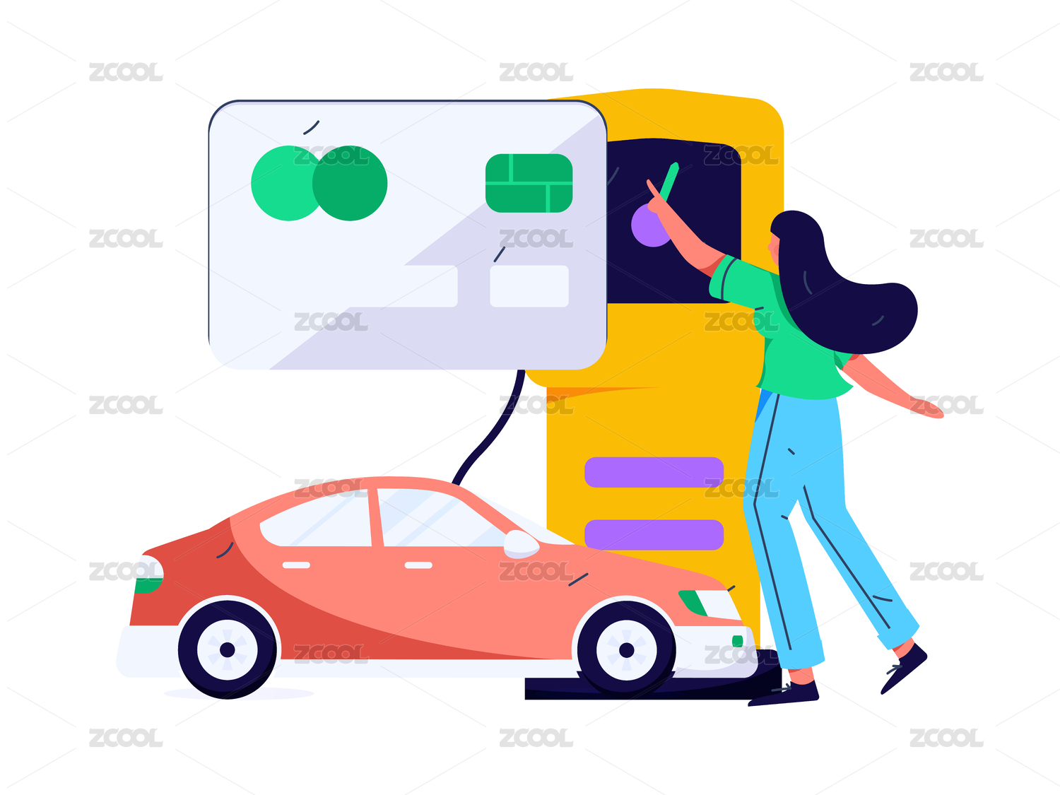 汽车加油获得优惠的人物矢量互联网运营手绘