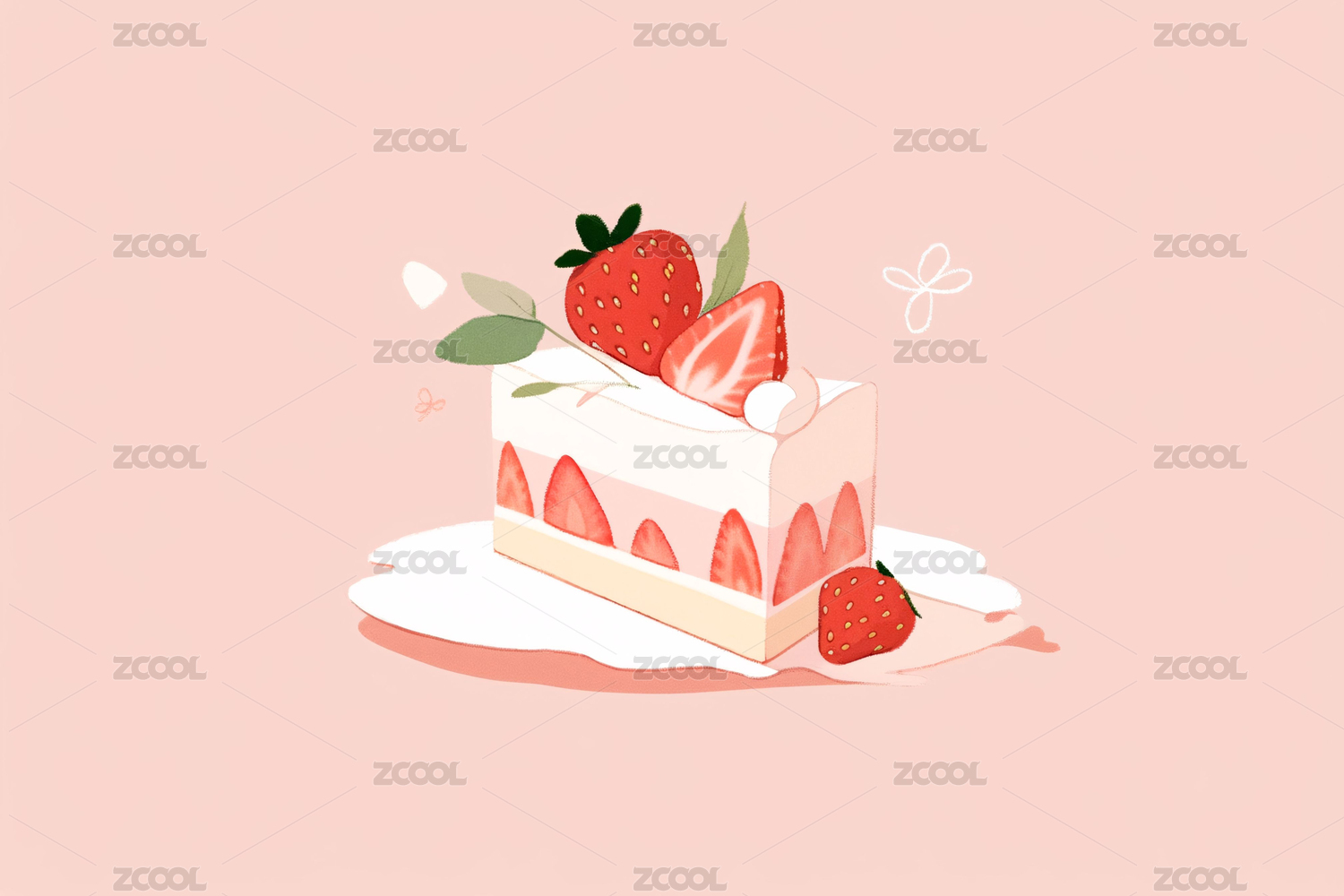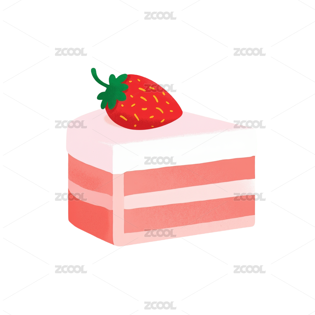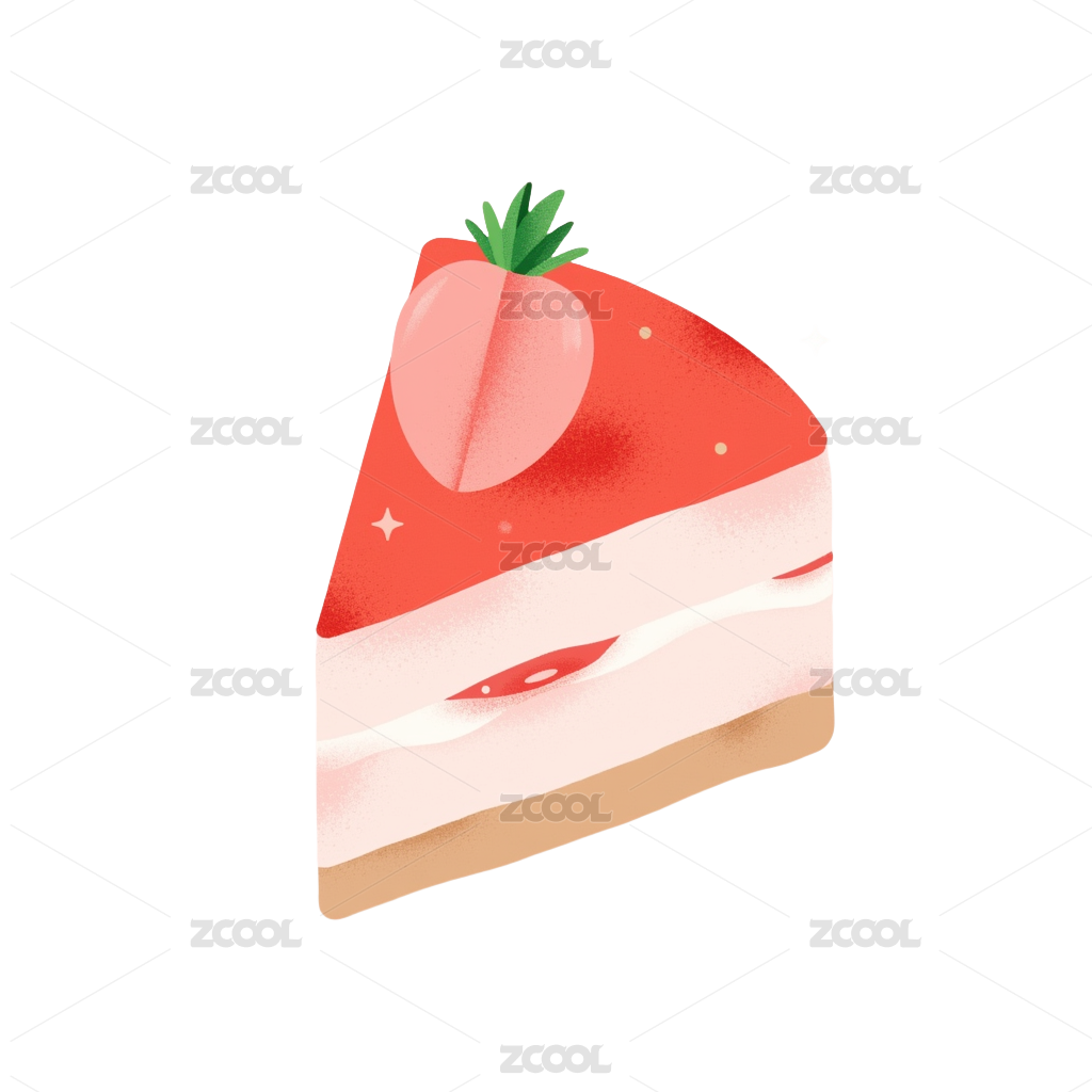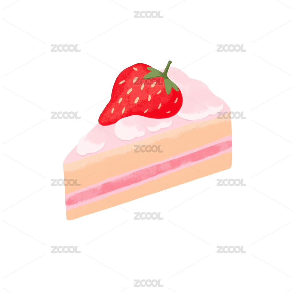 草莓慕斯蛋糕甜品美食手绘插画元素