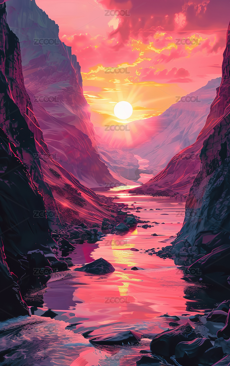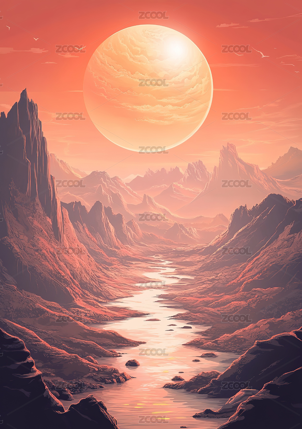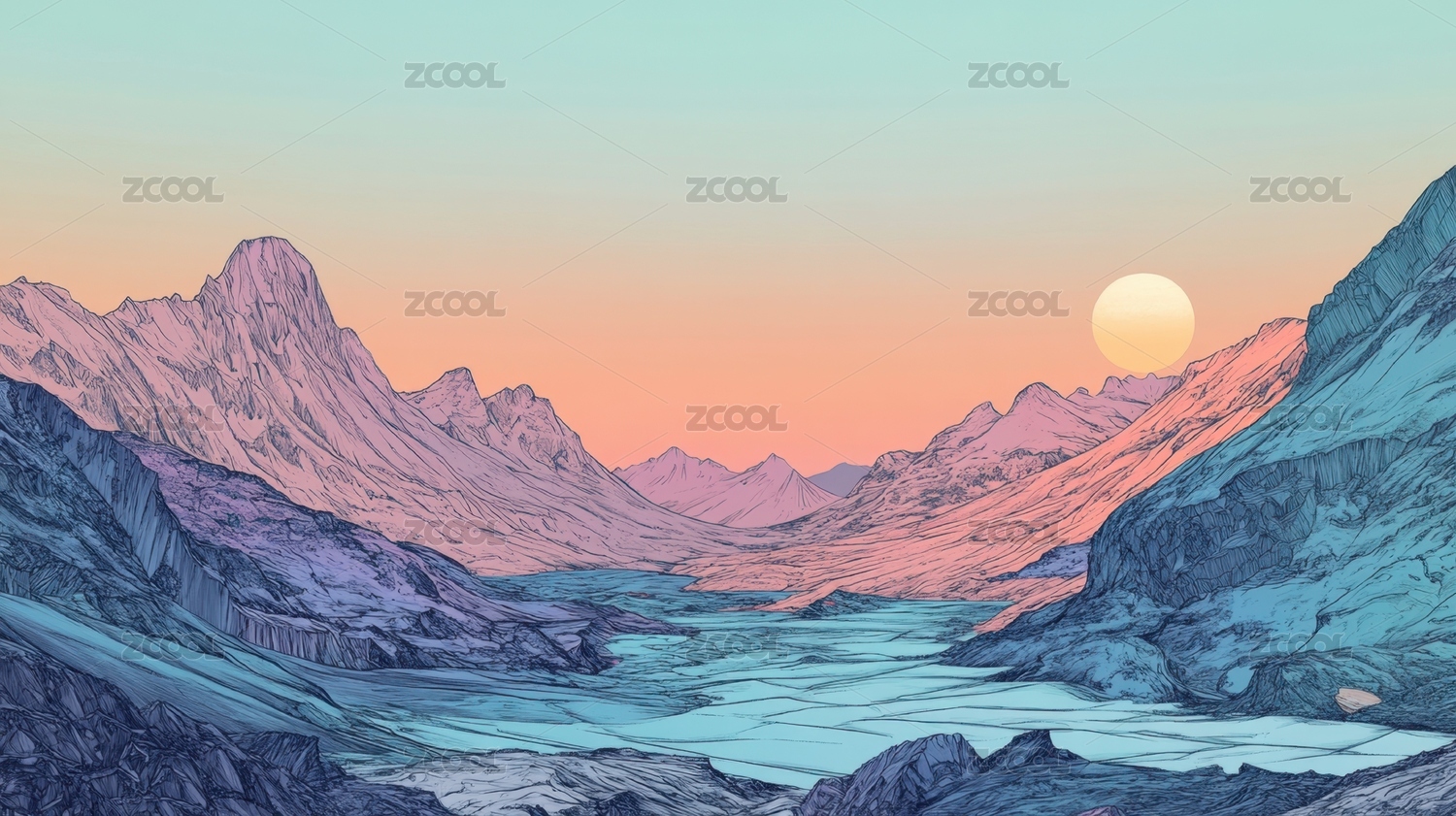 绿色山顶风景抽象艺术装饰画插画海报背景