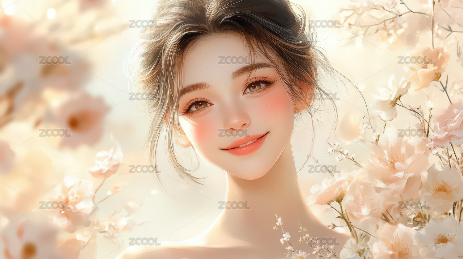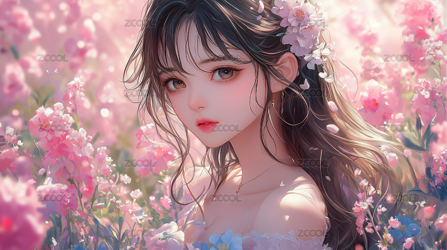 春日少女,花影摇曳,唯美梦幻的视觉盛宴