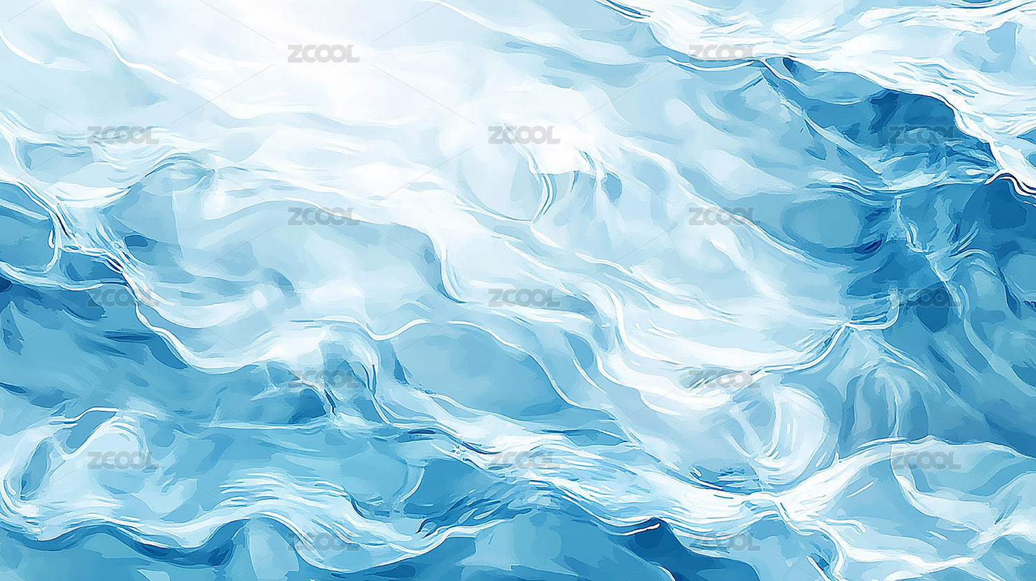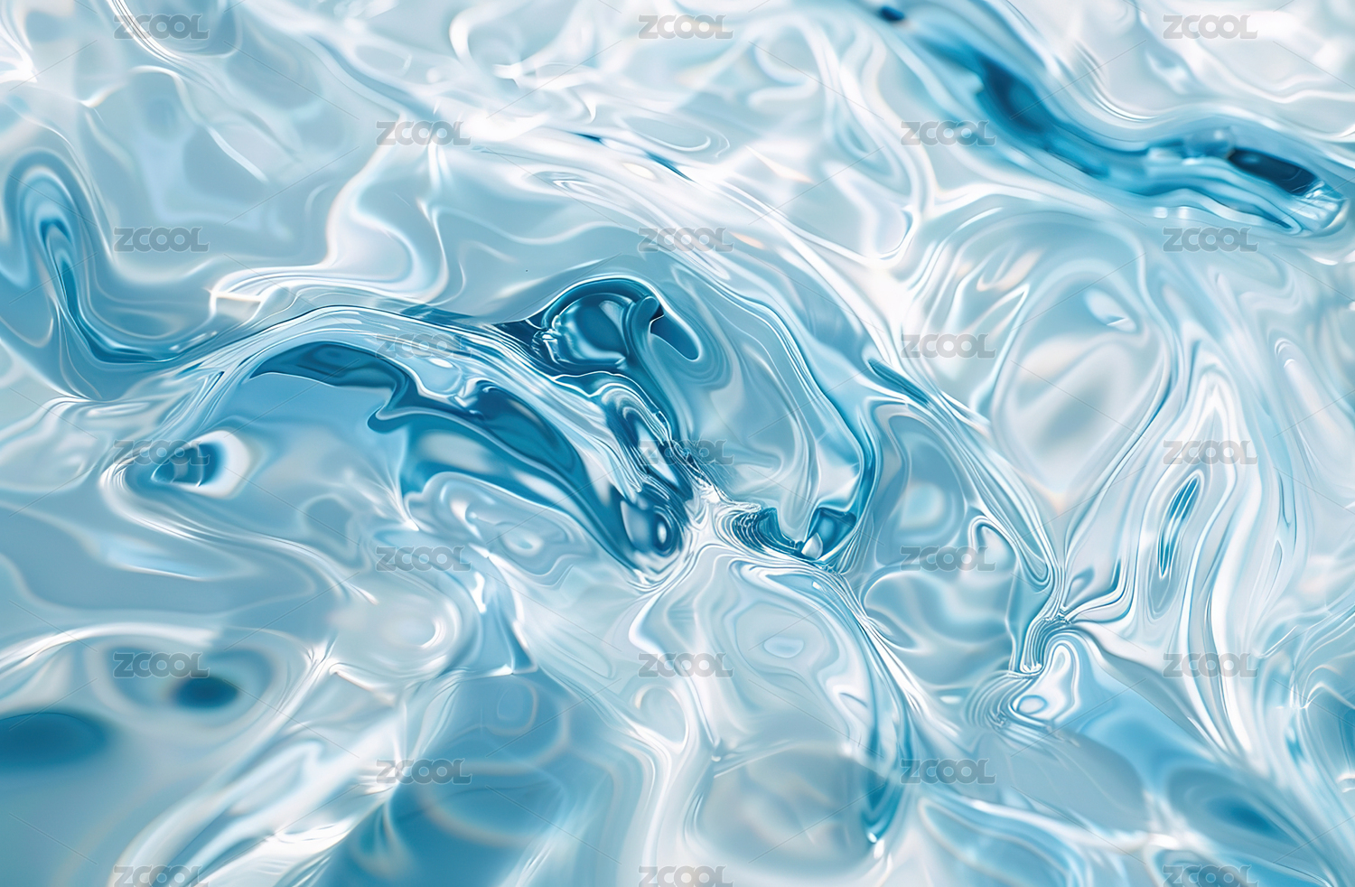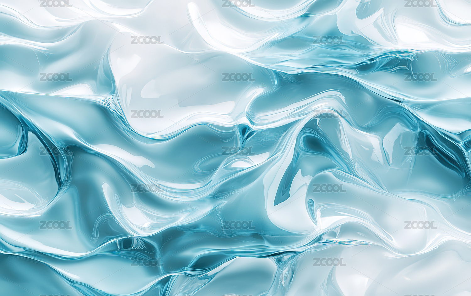 晶莹反射光影起伏波浪流淌透明液体3d插画
