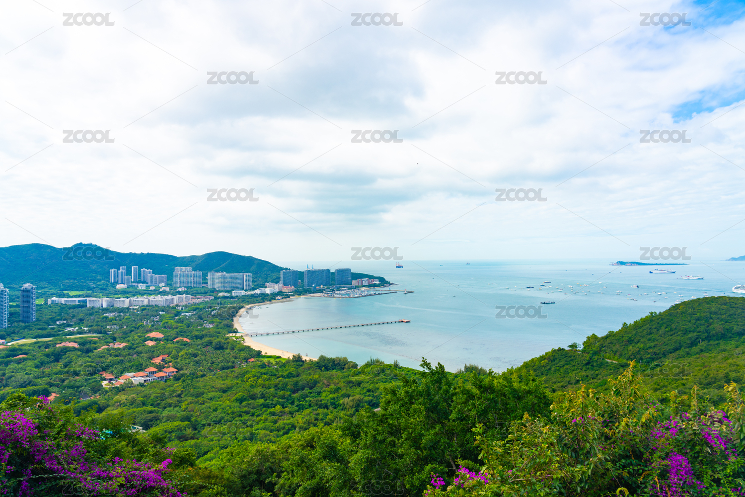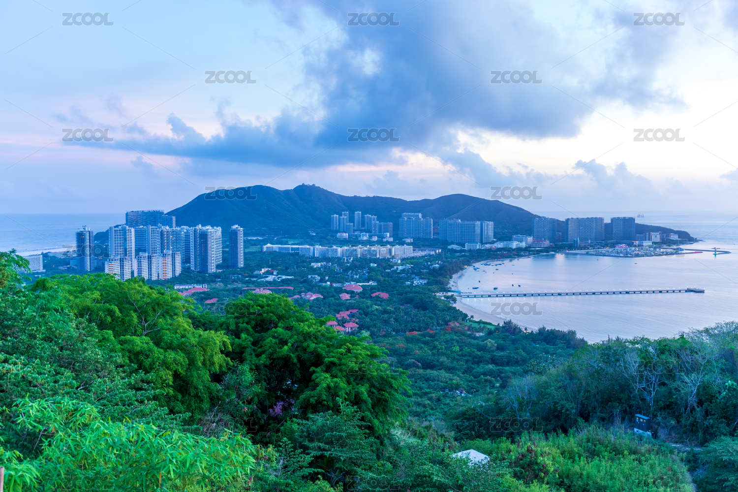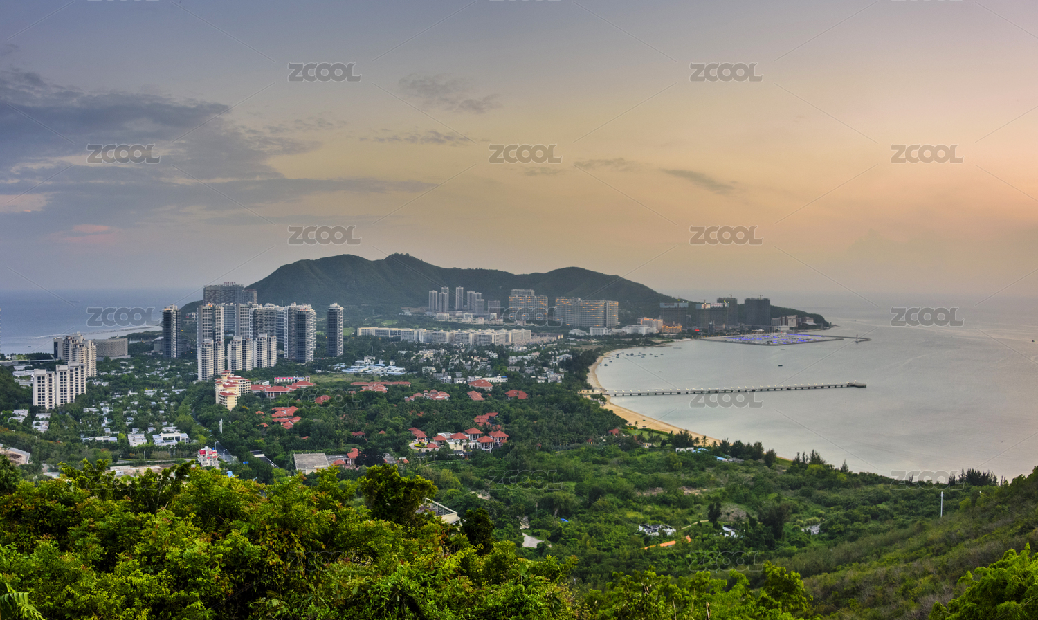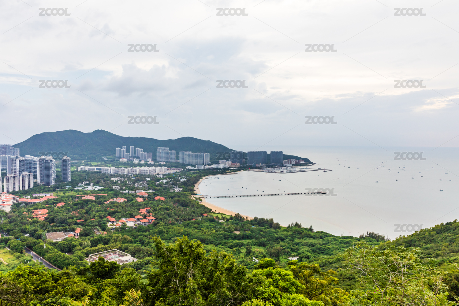 海南著名景点鹿回头风景区俯瞰海岸城市