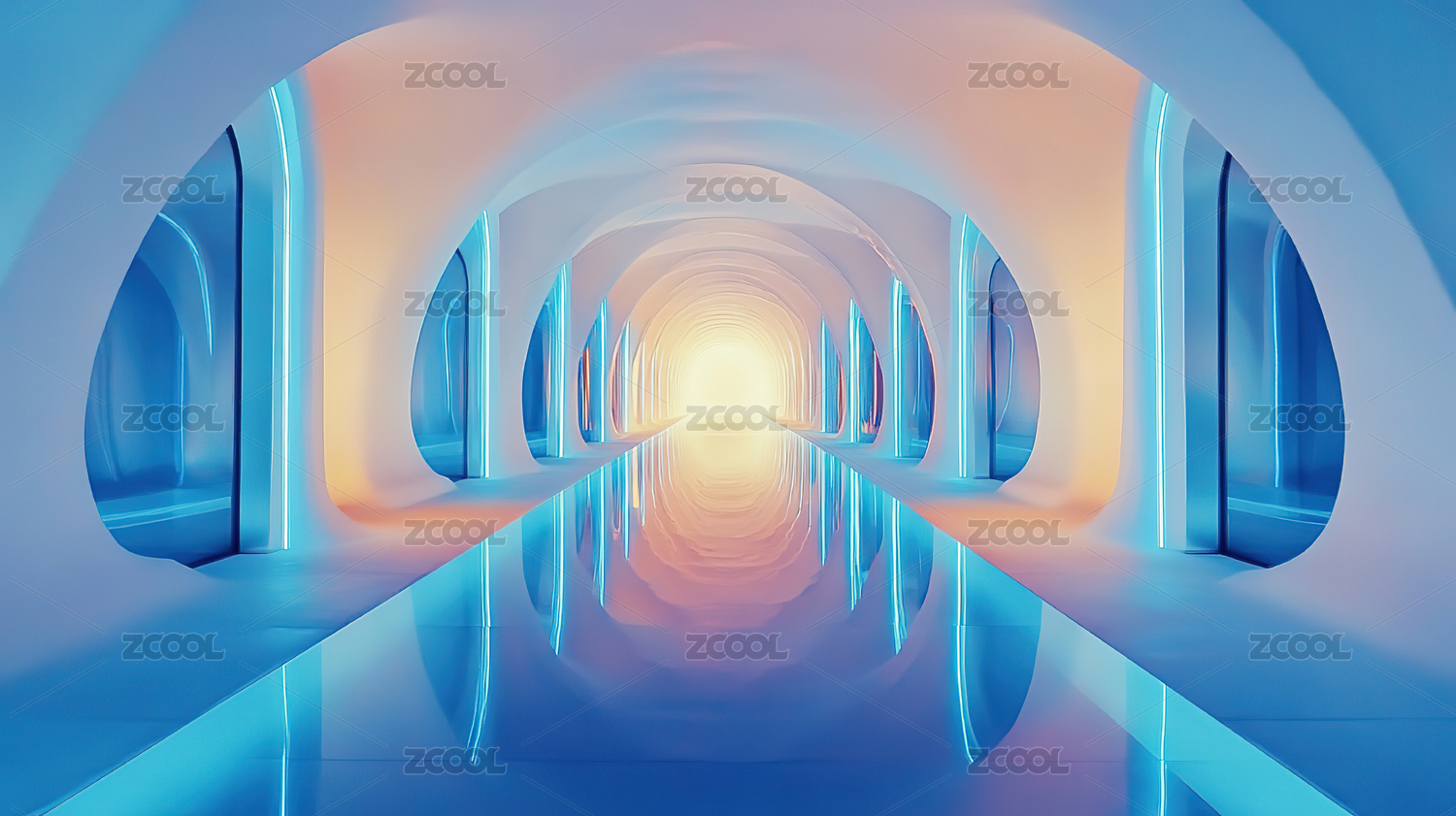 数码科技灰蓝色几何抽象圆形旋转插画海报背