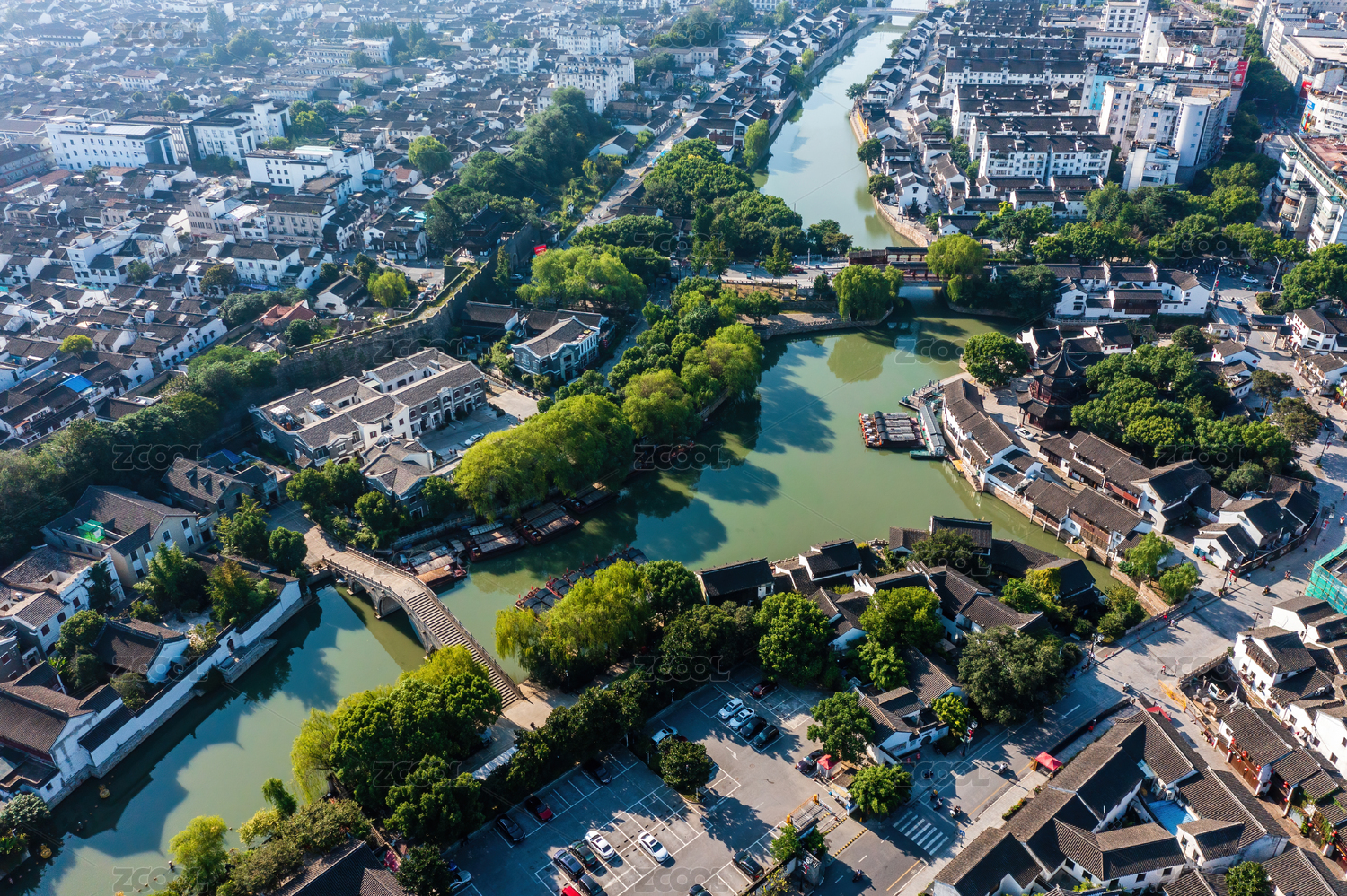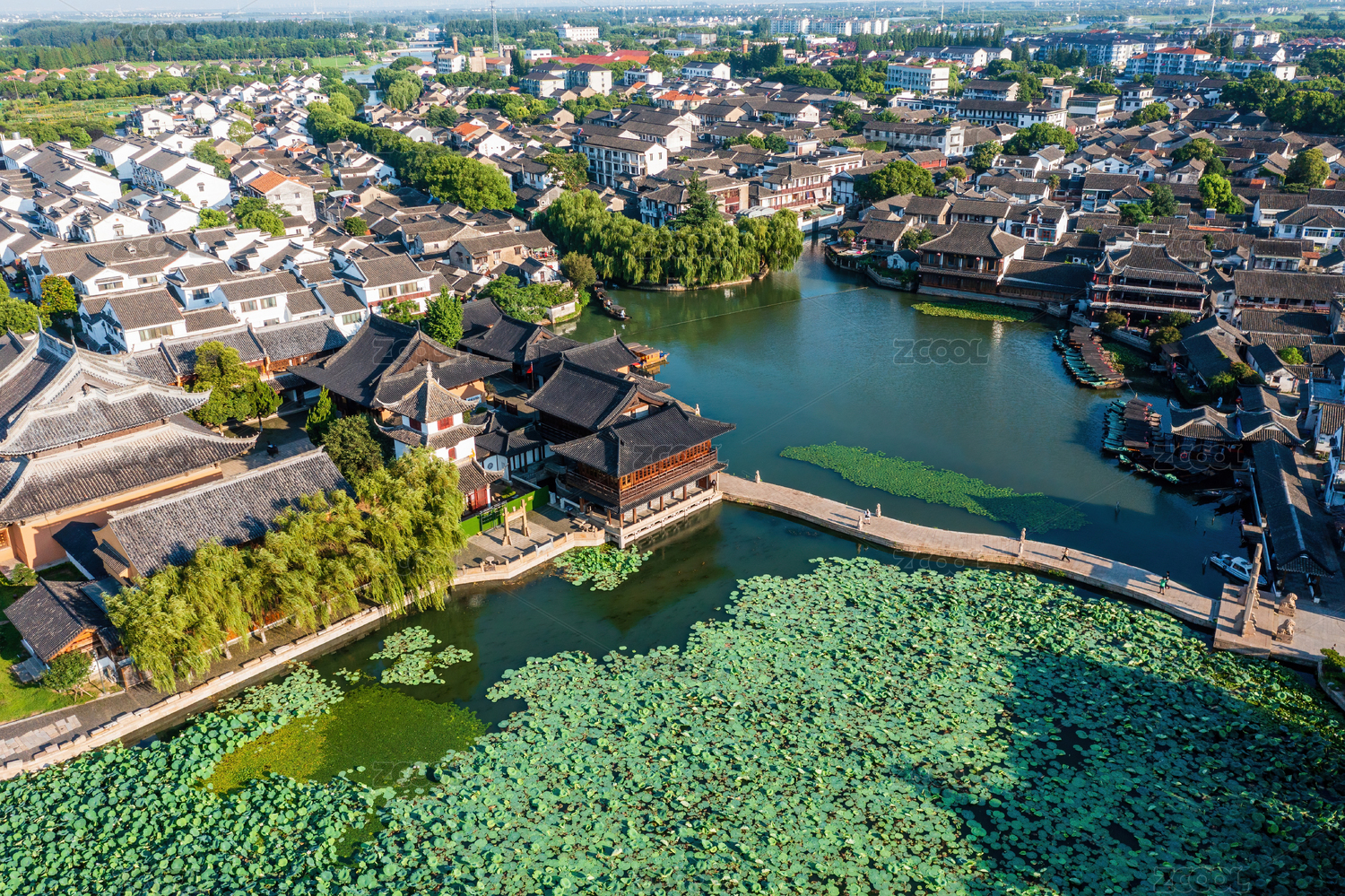 中国,苏州,锦溪古镇,江苏,航拍,古镇,航拍视角,著名景点,旅游目的地,传统