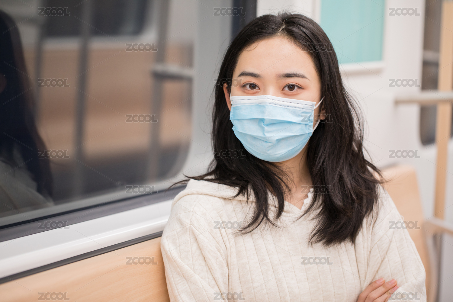 年轻女性戴口罩搭乘地铁戴口罩