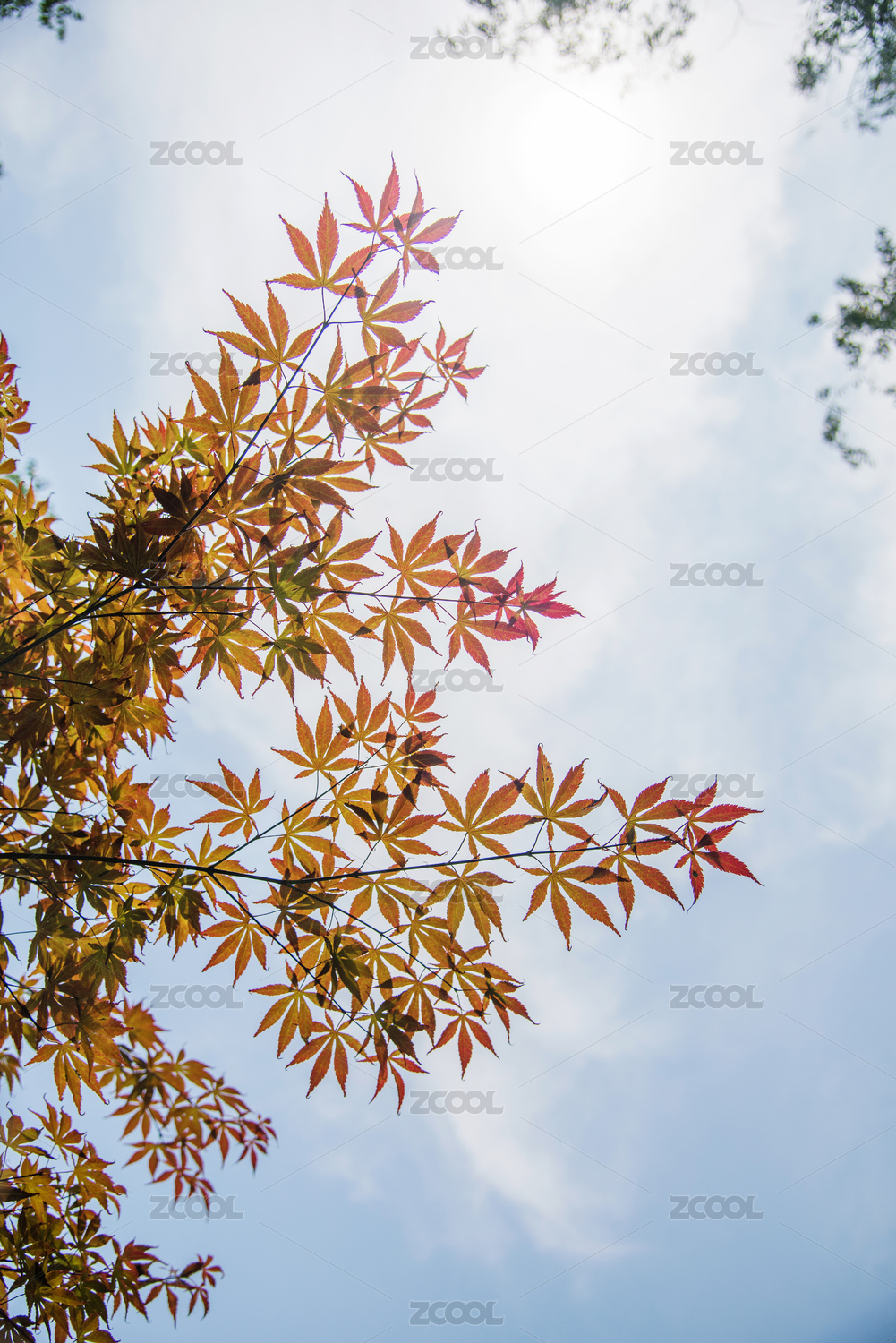 秋天红叶霜降枫树枫叶林,自然风景天空树林