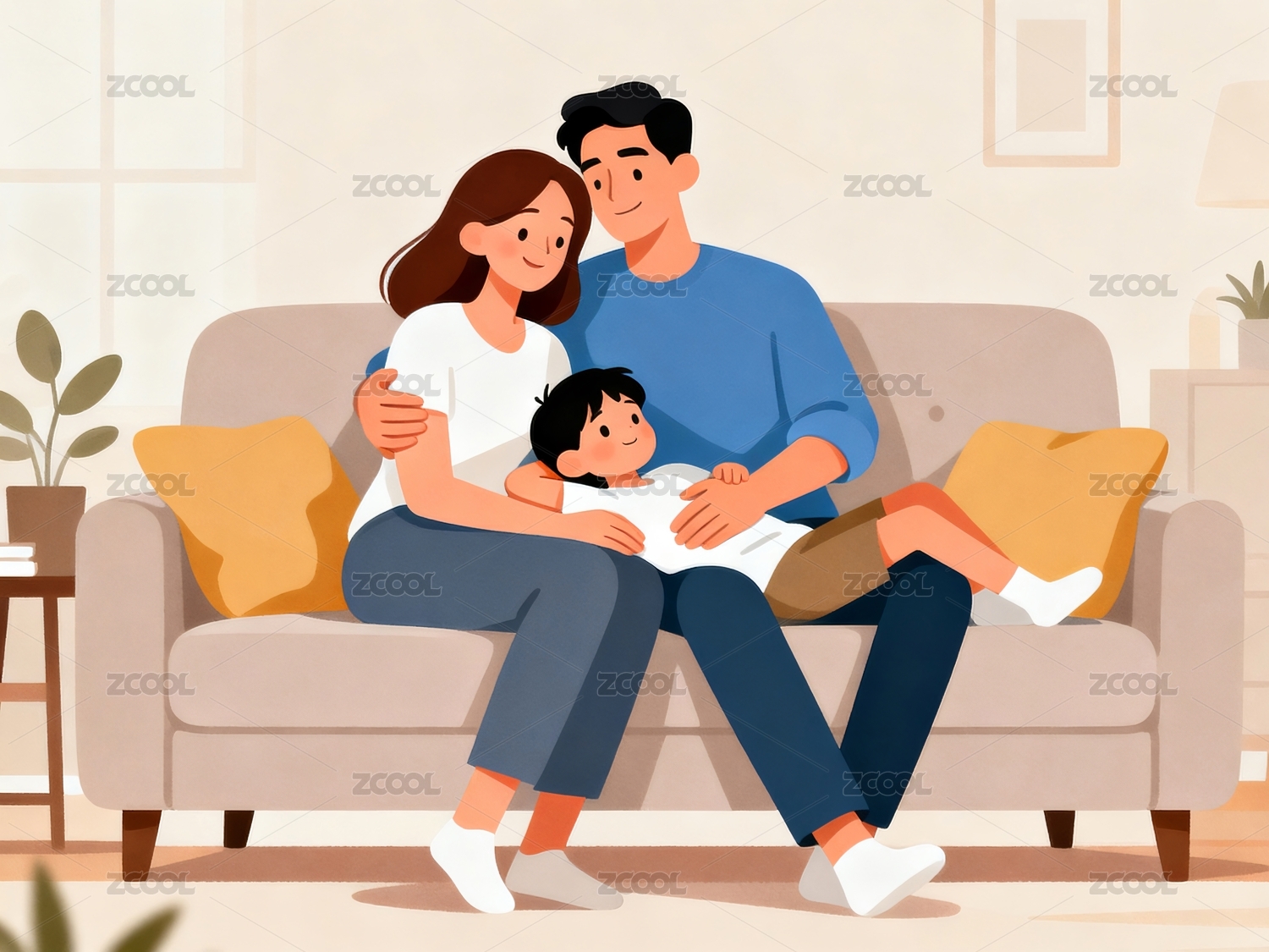 一家人,矢量,插画,幸福,过年,春节,红包,男人,女人,沙发