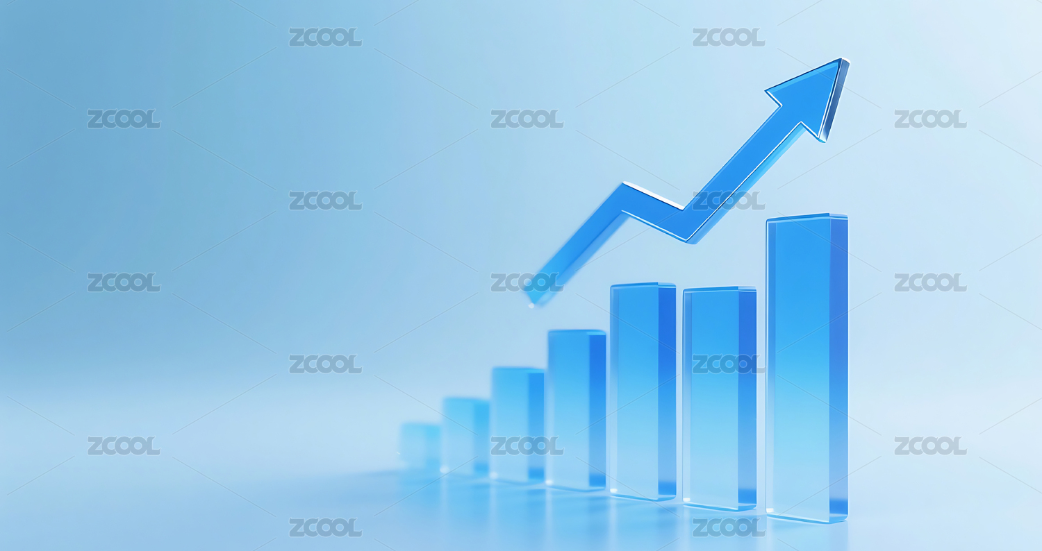 蓝色渐变玻璃质感金融柱状图增长箭头背景
