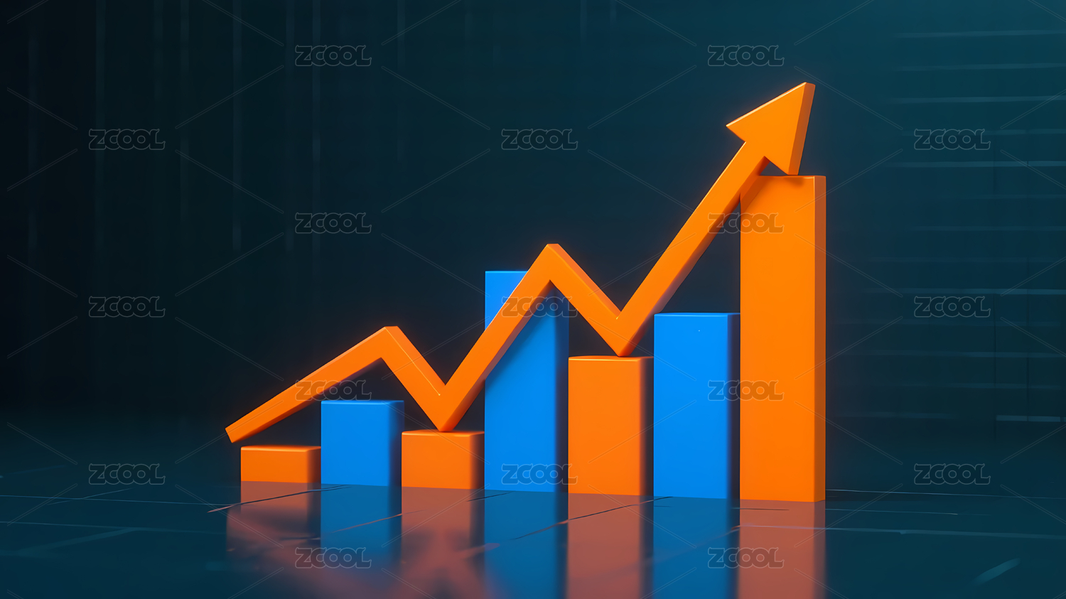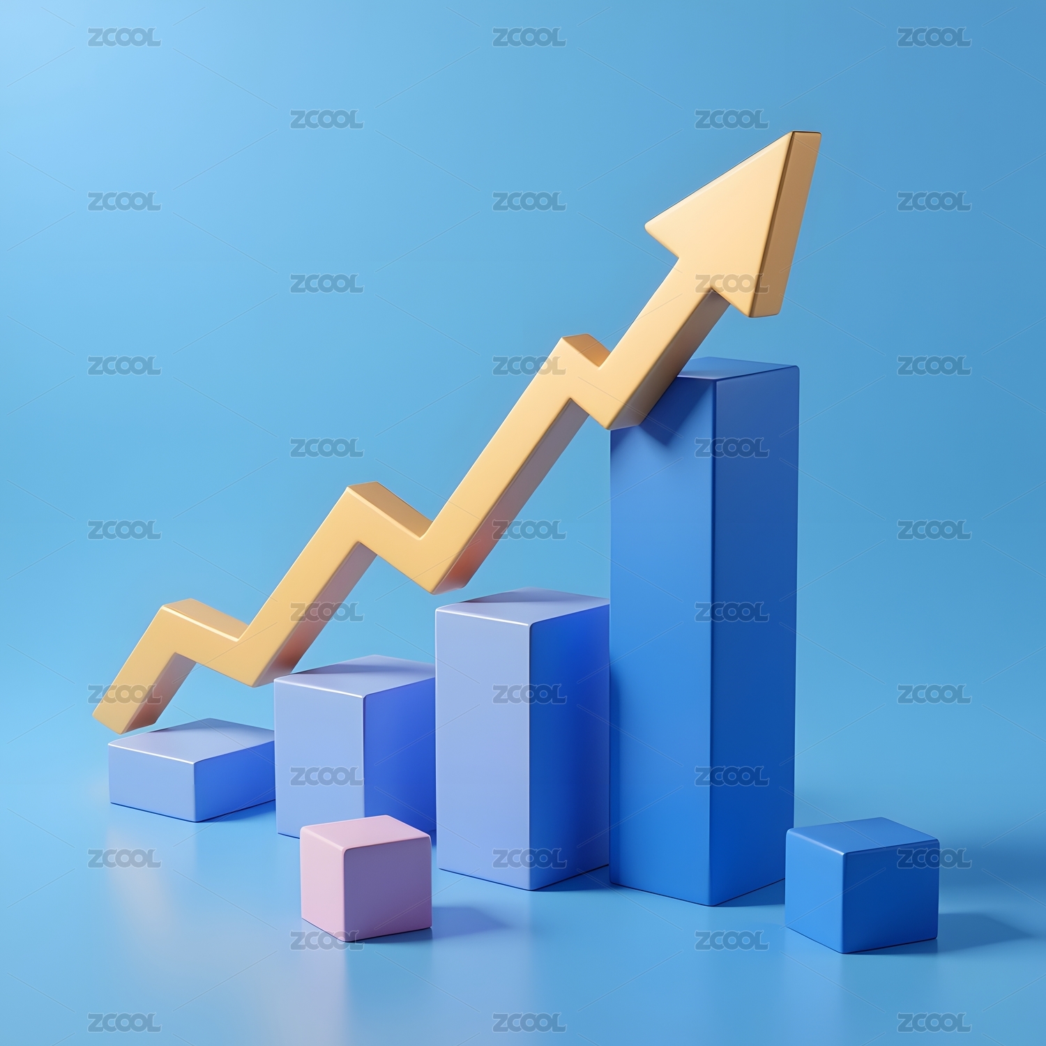 蓝色,视觉效果,金色柱状图,蓝色柱状图,箭头,增长趋势,上升,图表,数据,统计