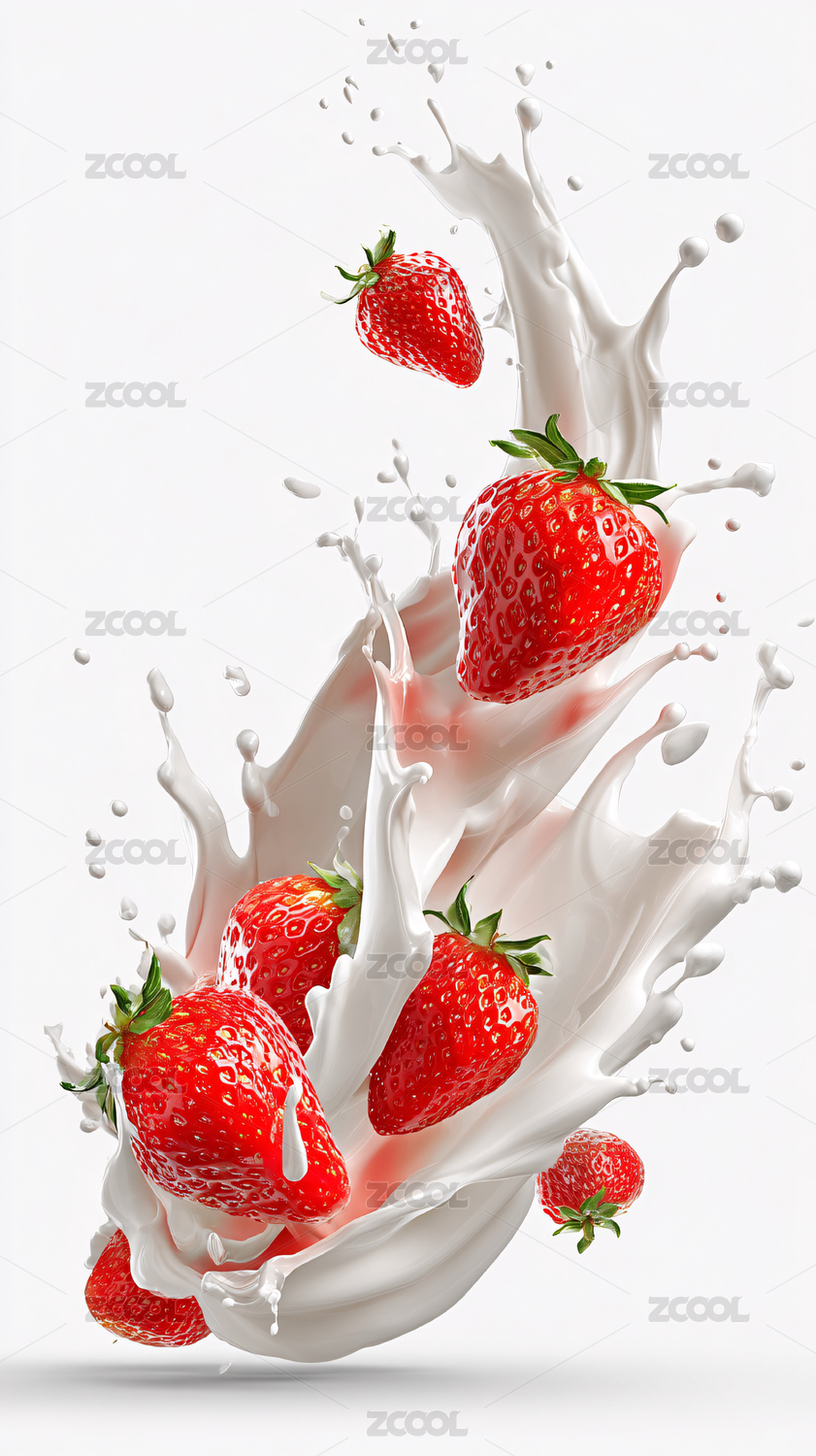 草莓与牛奶的动感碰撞瞬间