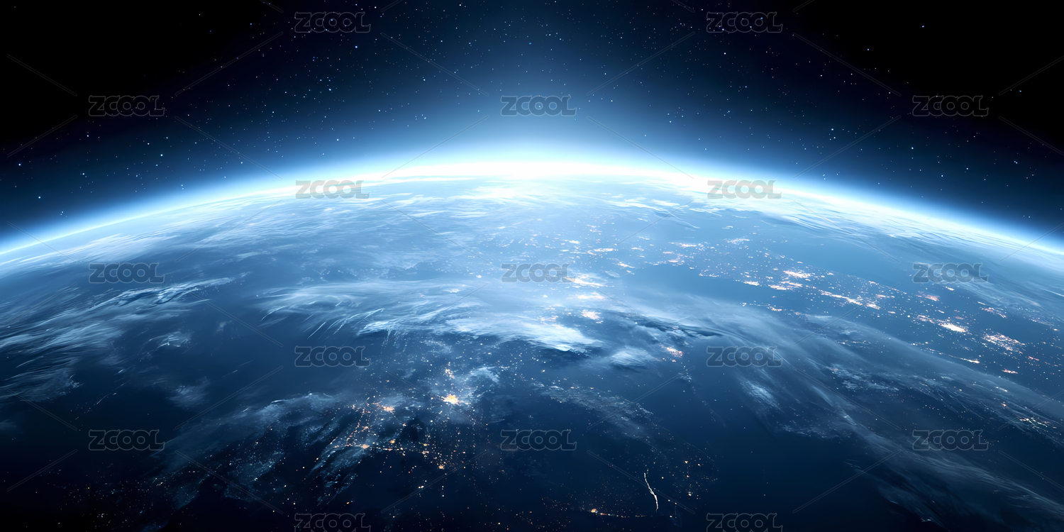 太空俯视地球美丽景象宇宙蓝色科技感背景
