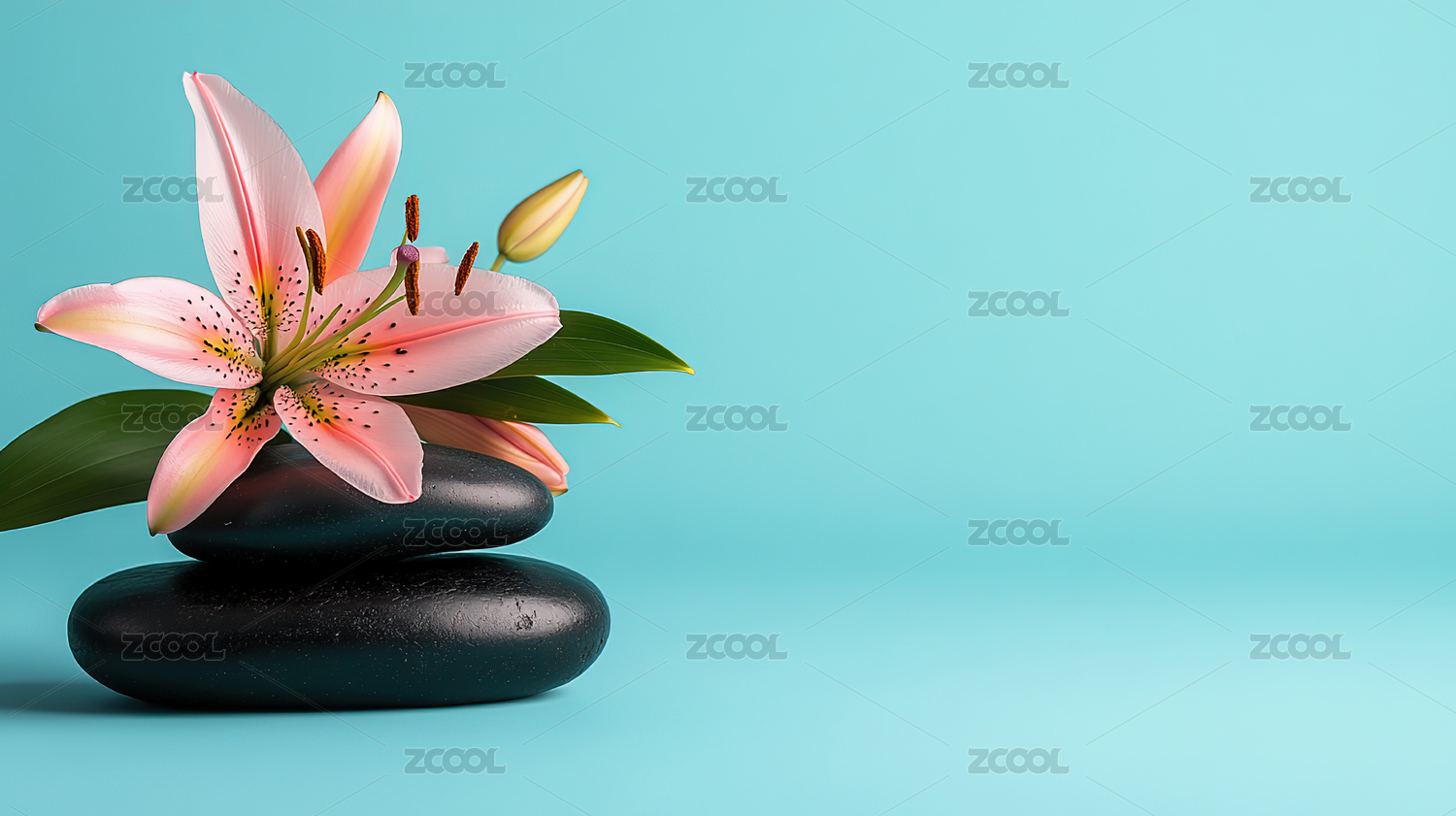 水疗静物禅宗石头花卉瑜伽冥想概念插图背景
