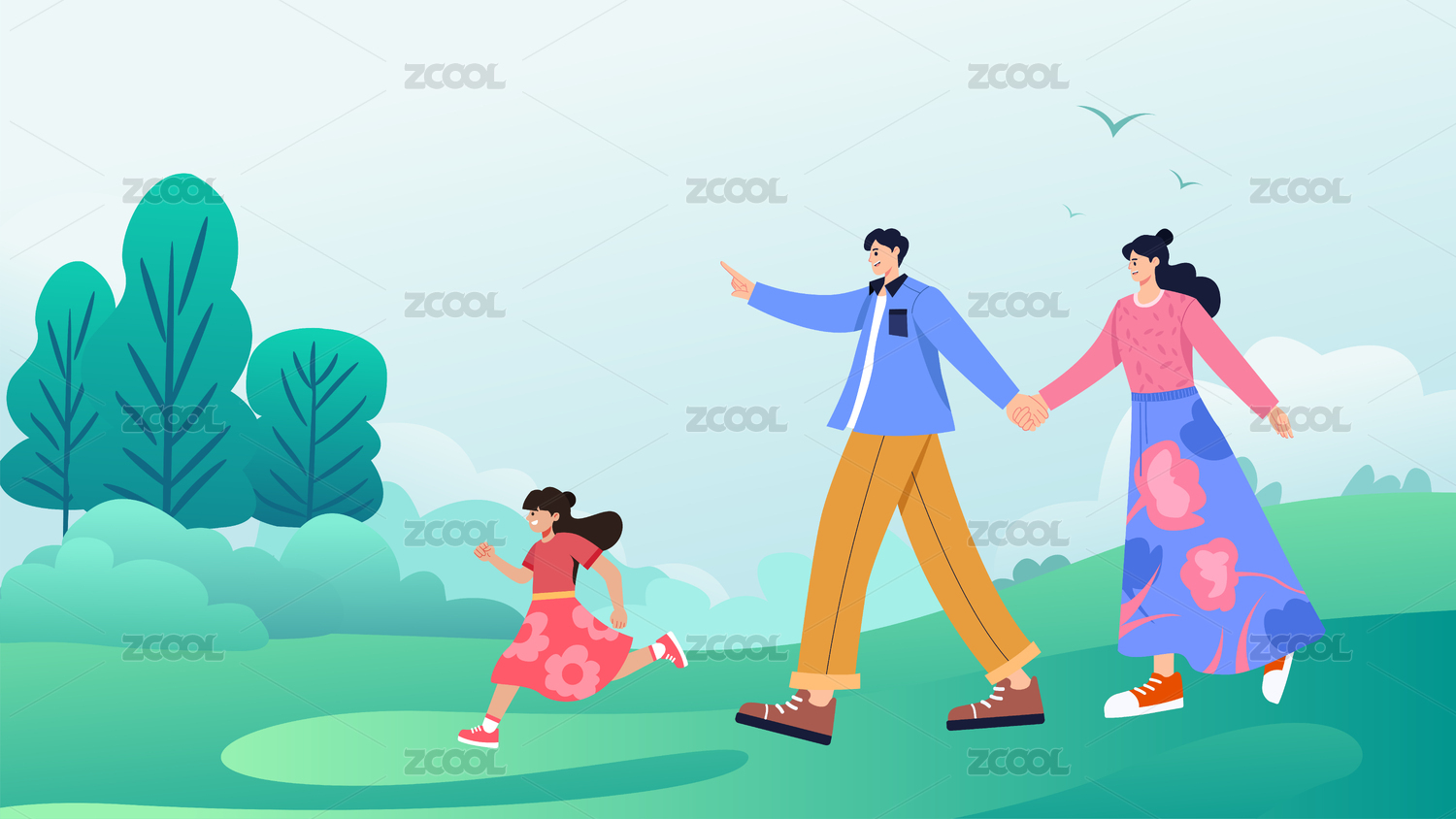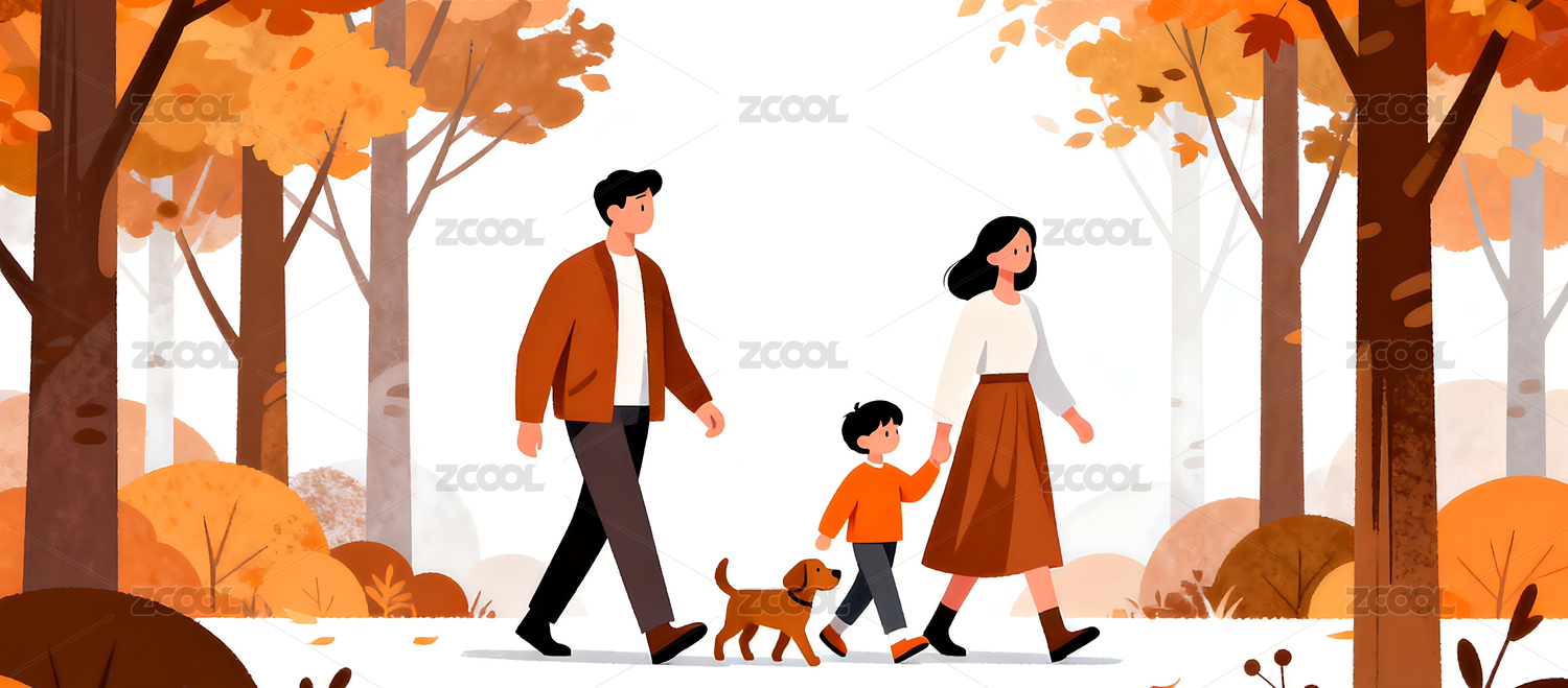 秋天秋游立秋秋分户外活动运动卡通漫画插画