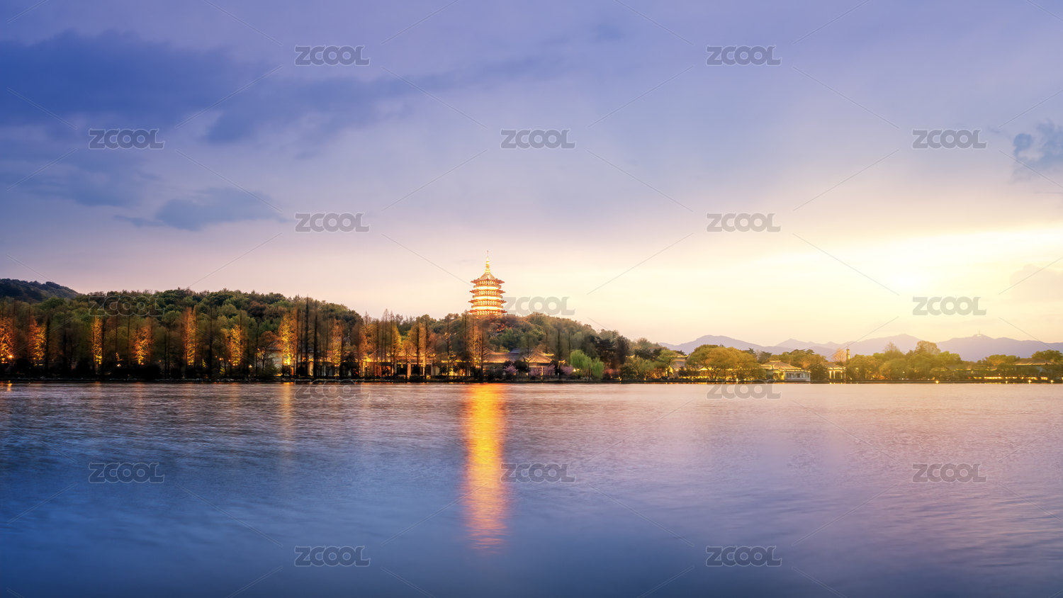 美丽,船,桥,建筑,中国,中国风格,游轮,古塔,杭州,湖泊