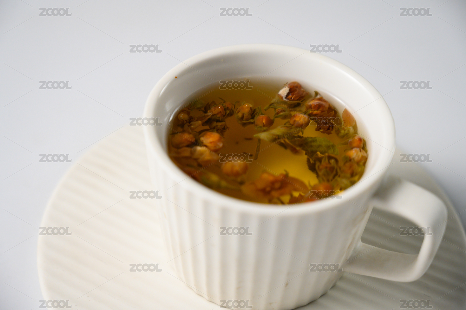 桌面上的杯子里的甘甜可口的赶黄草茶