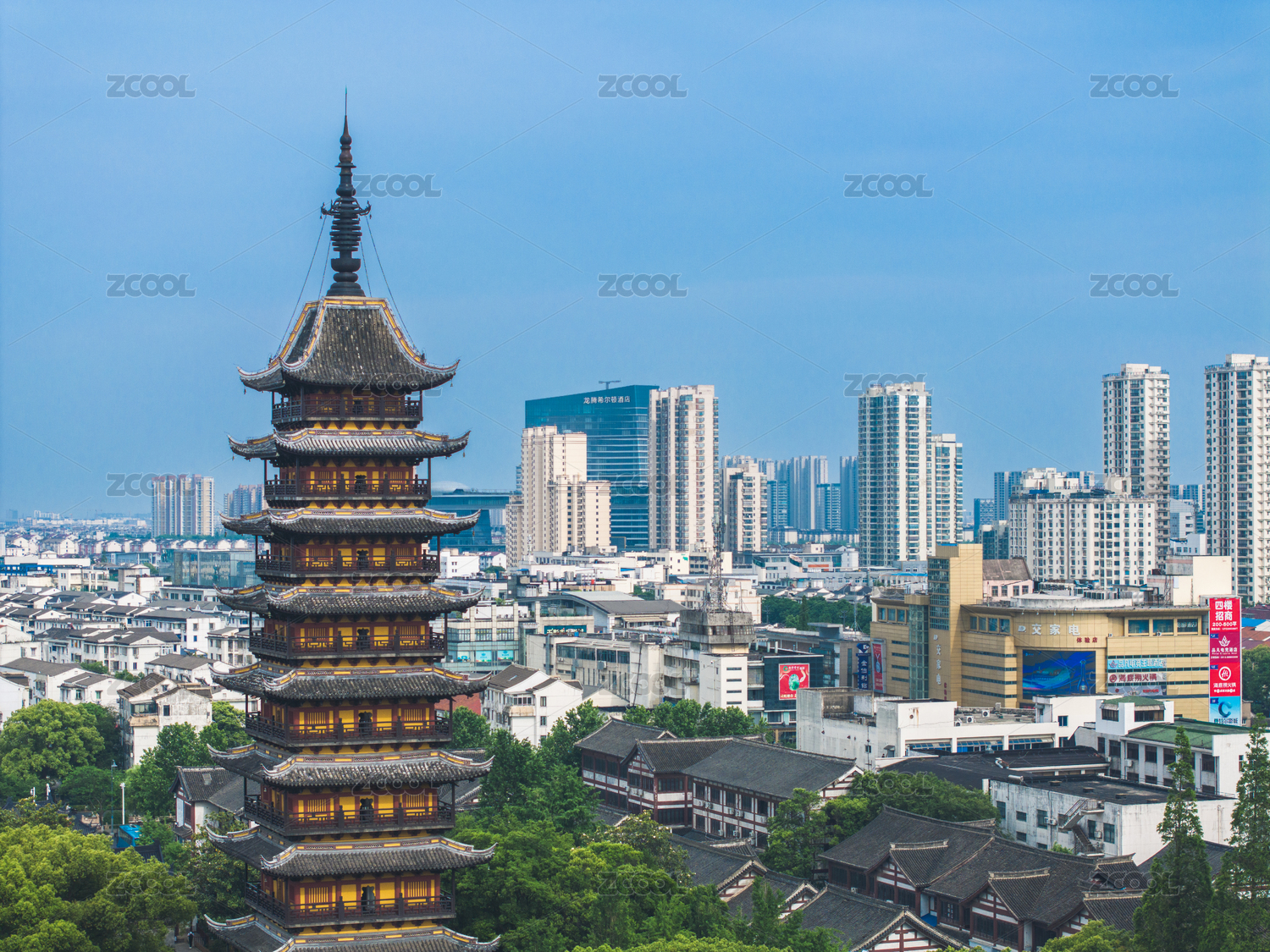 航拍隐藏在城市里的仙境江苏常熟方塔园