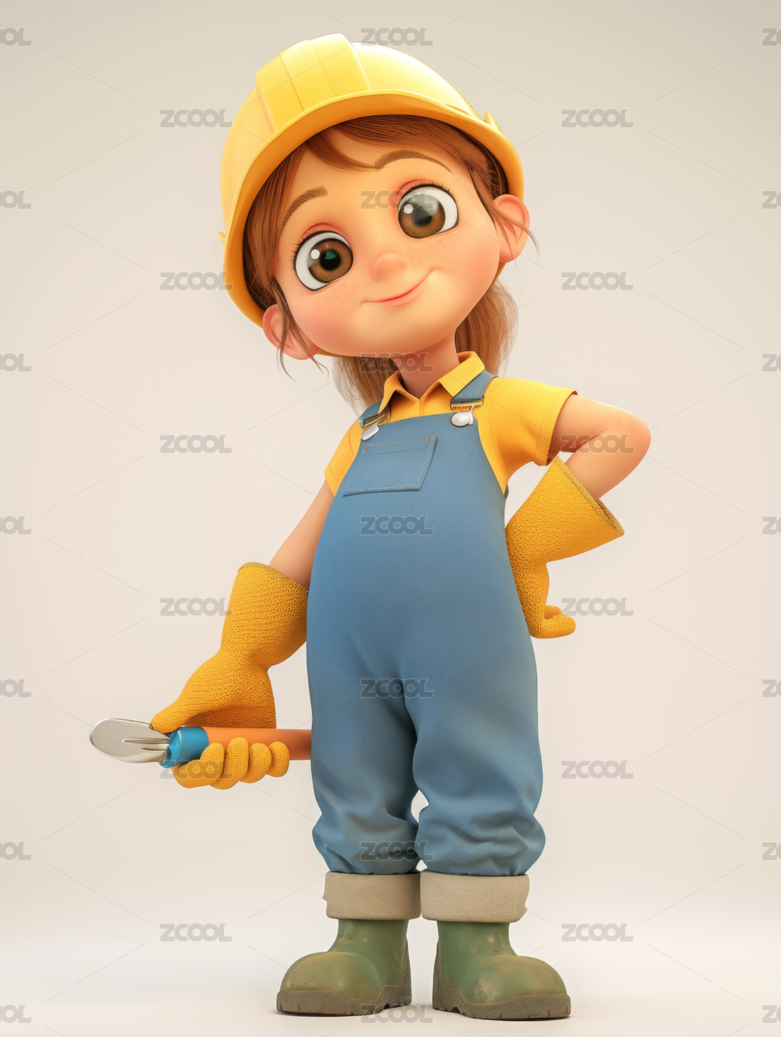 3D,卡通,人物,人,职业,工作,站,女,女人,服务