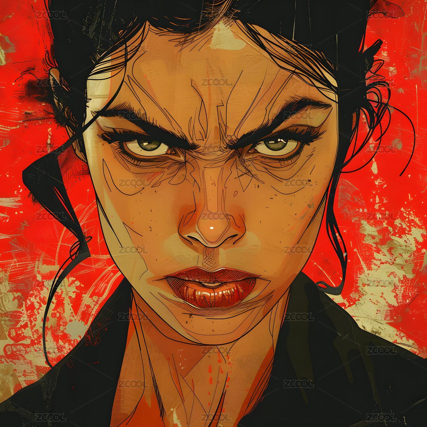 蓝色眼睛红色嘴唇的抽象女人肖像