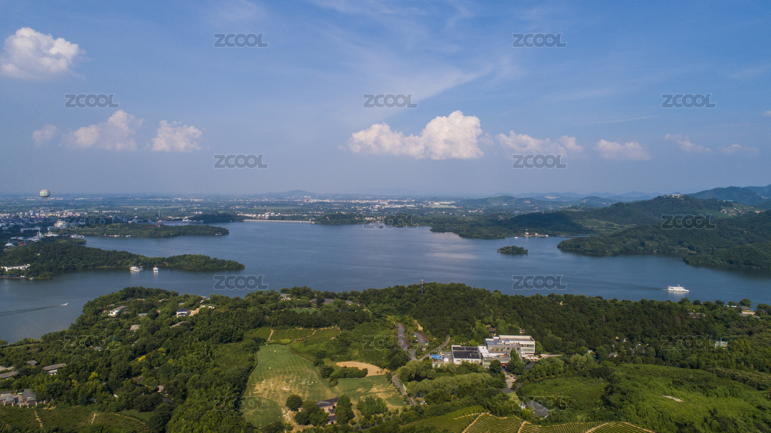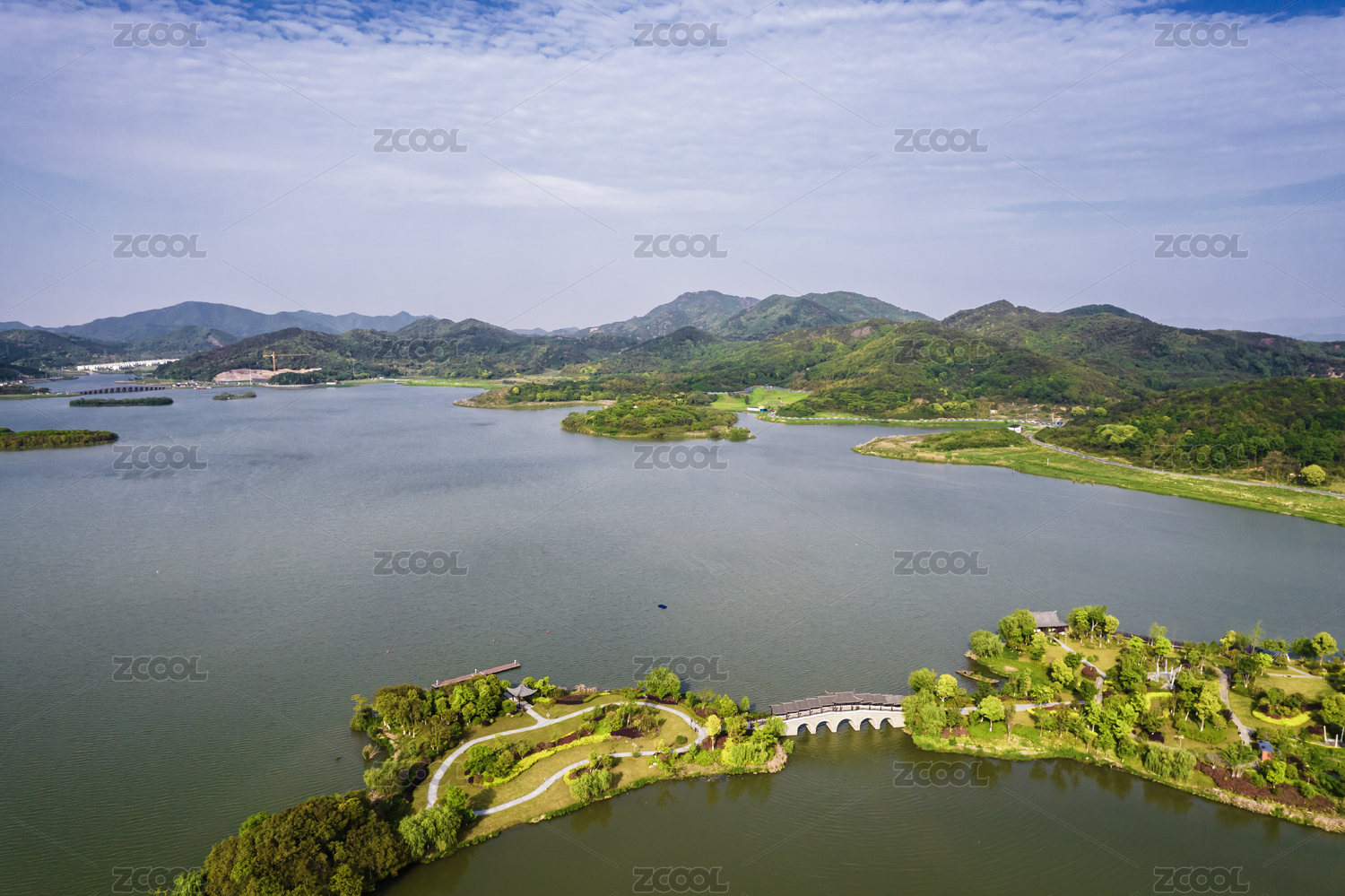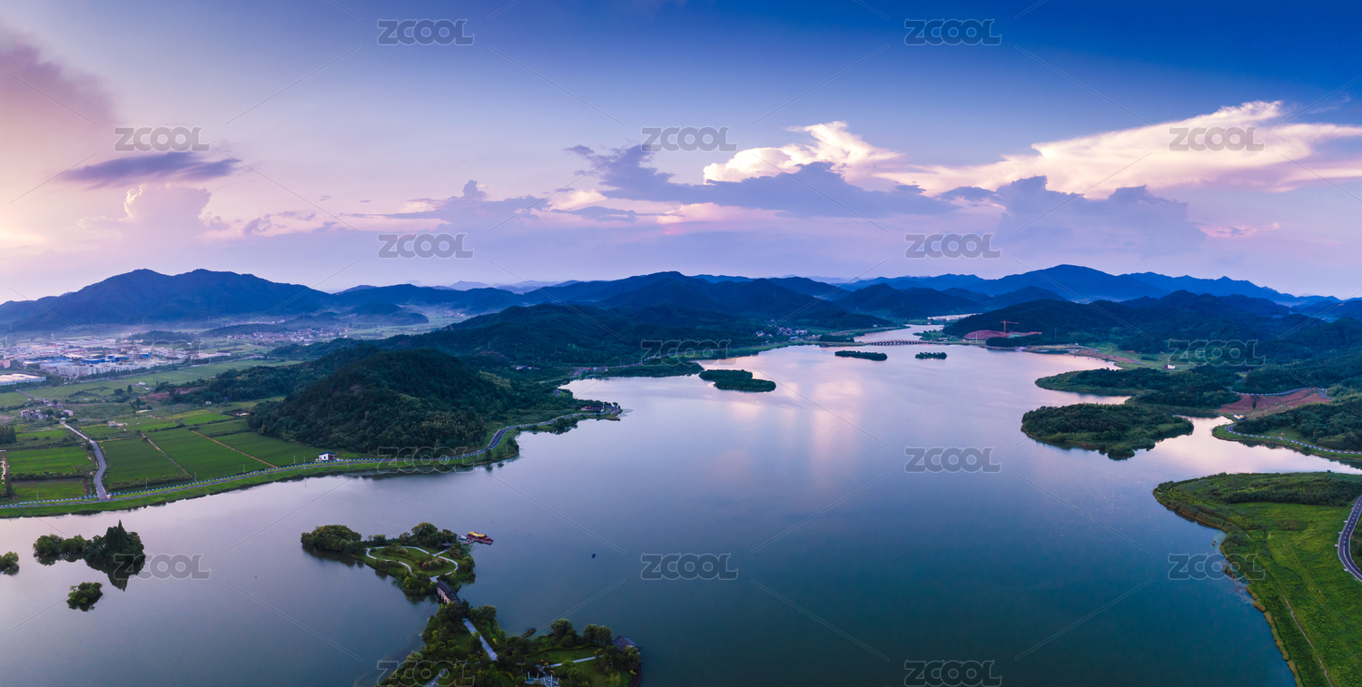 航拍中国安徽宣城市郎溪县龙须湖风光