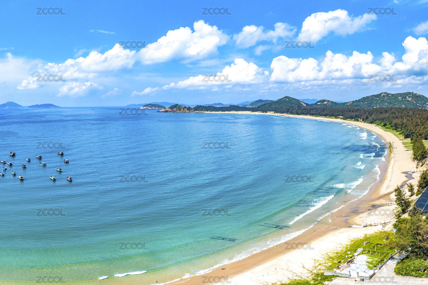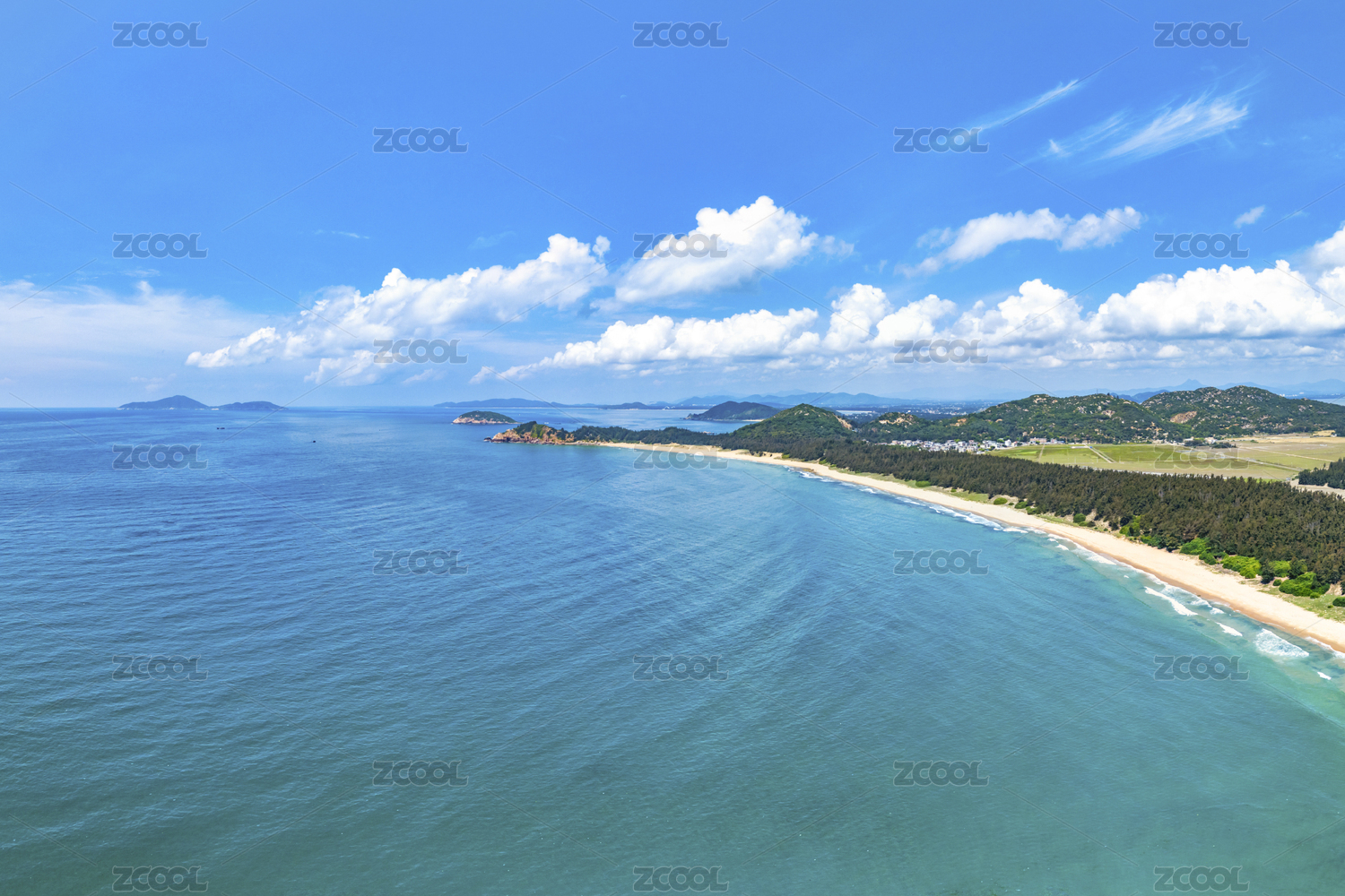夏天东涌蓝天白云下的深圳东涌沙滩