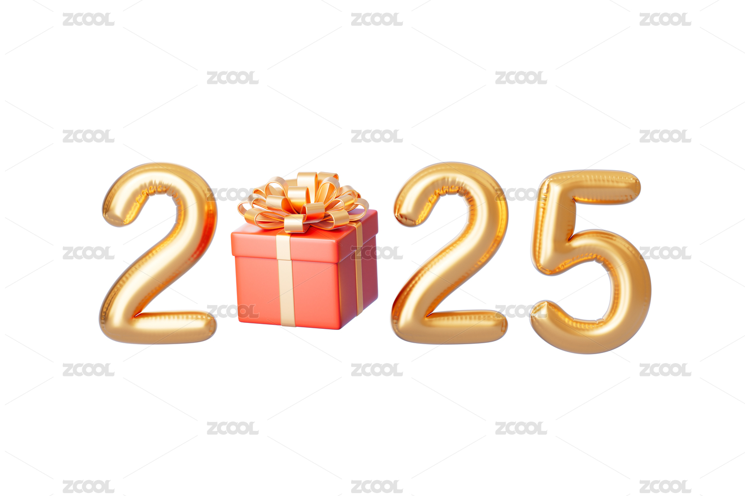 3D渲染白色背景下2025新年创意气球字