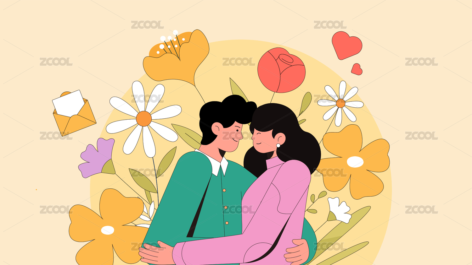 情侣拥抱示爱插画