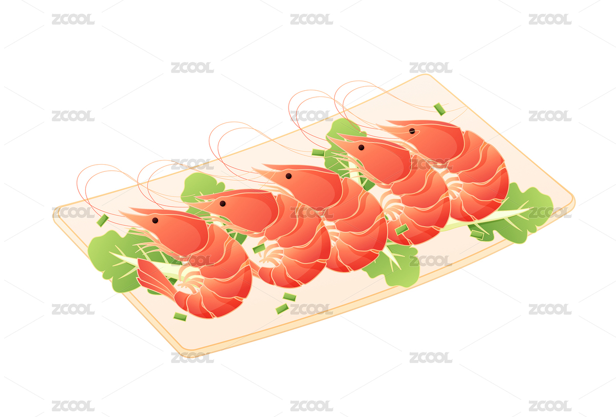 一盘美味的虾美食插画