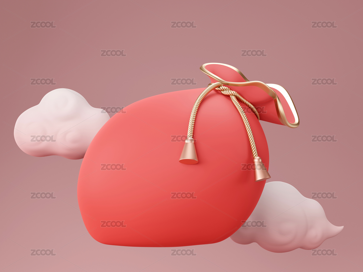新年喜庆3D红色锦囊福袋和祥云组合素材