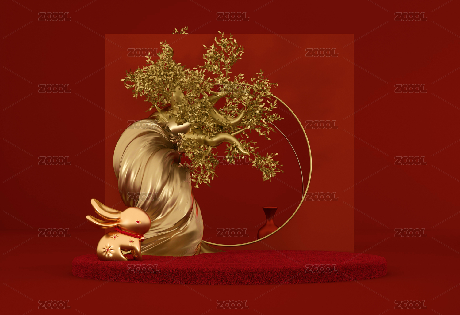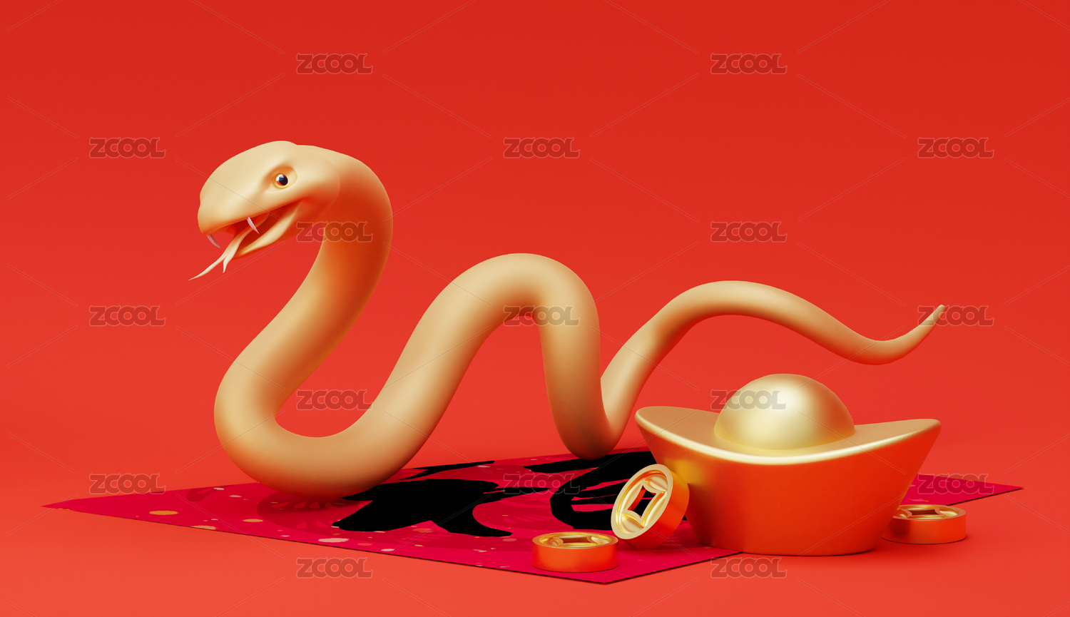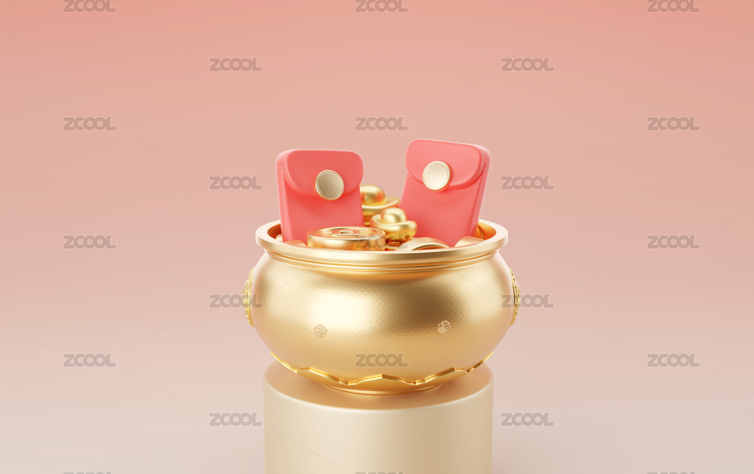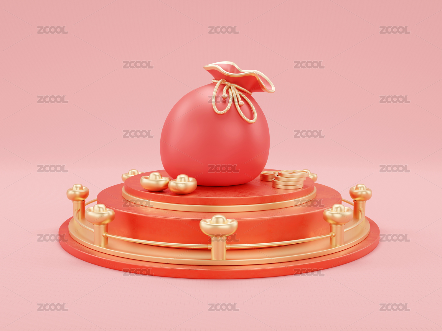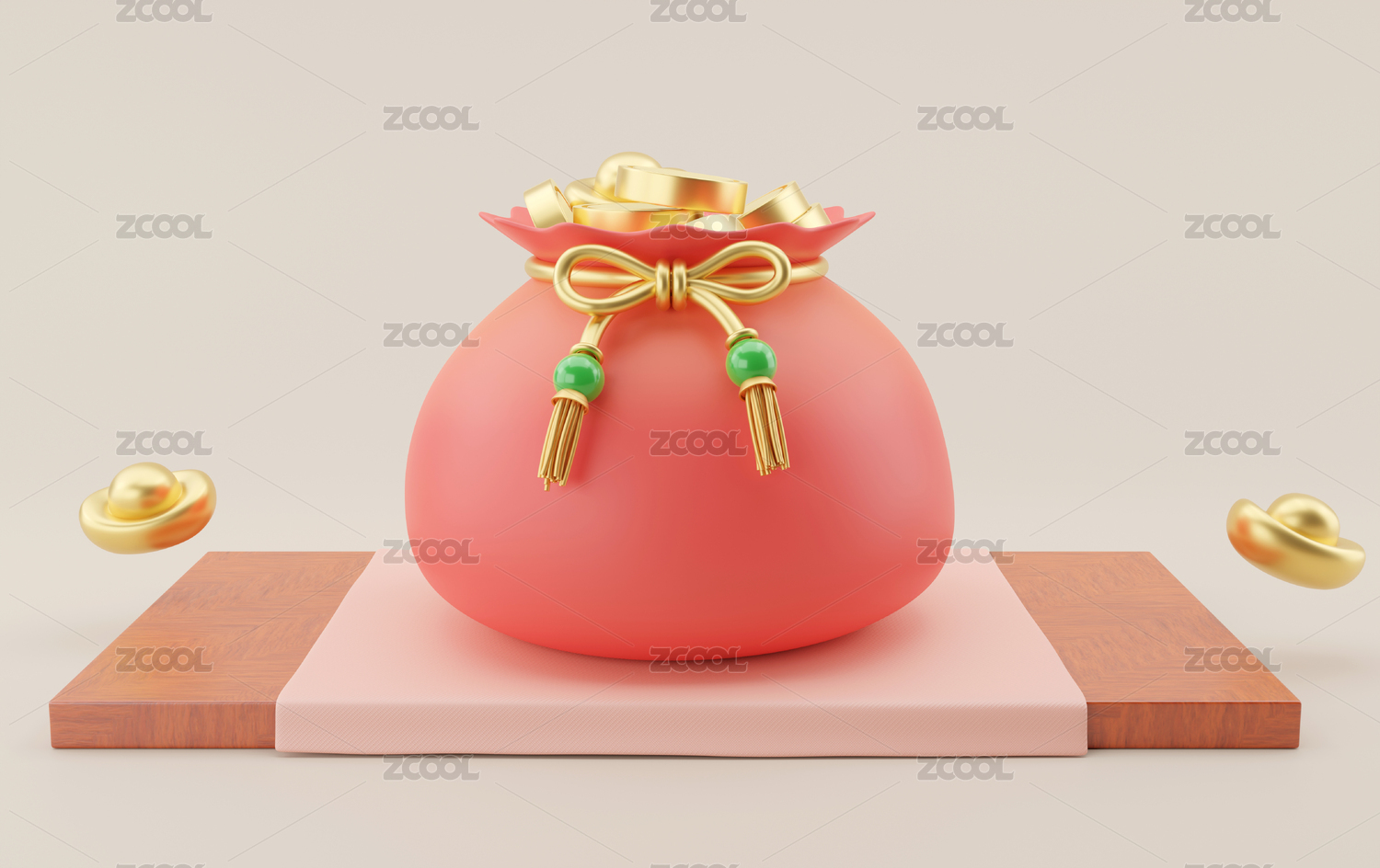 装满元宝高质感的3D红色喜庆运营活动福袋