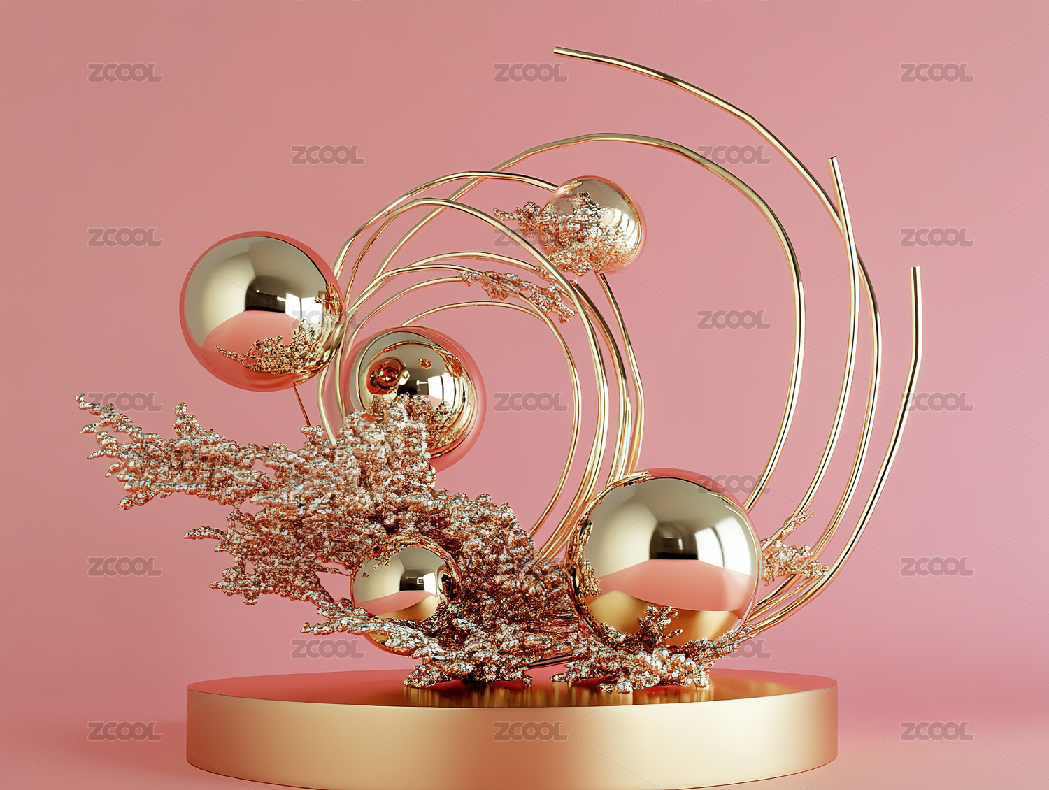 3D,福袋,锦囊,元宝,吉祥,树木,生长,生命,结果,金色