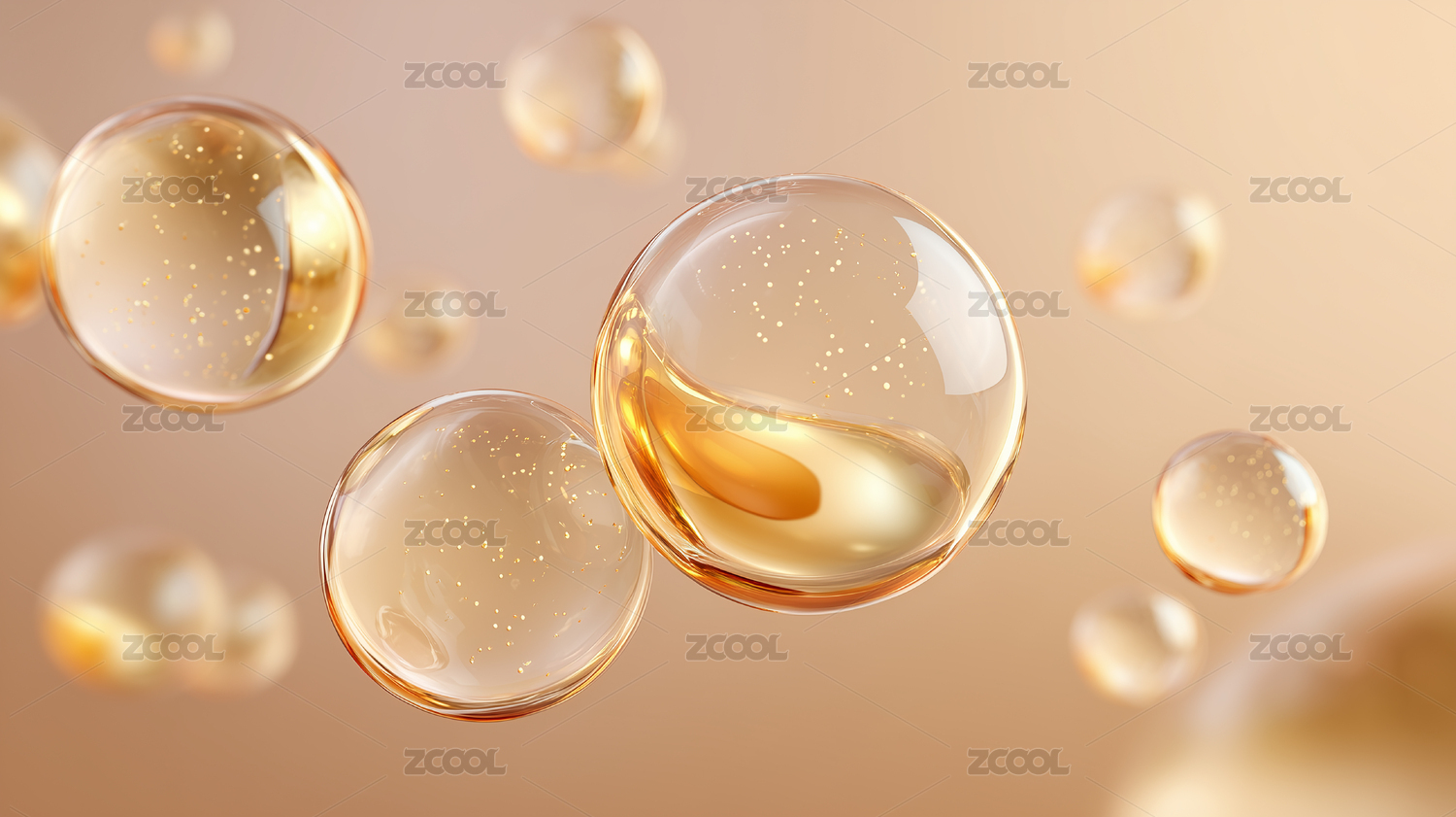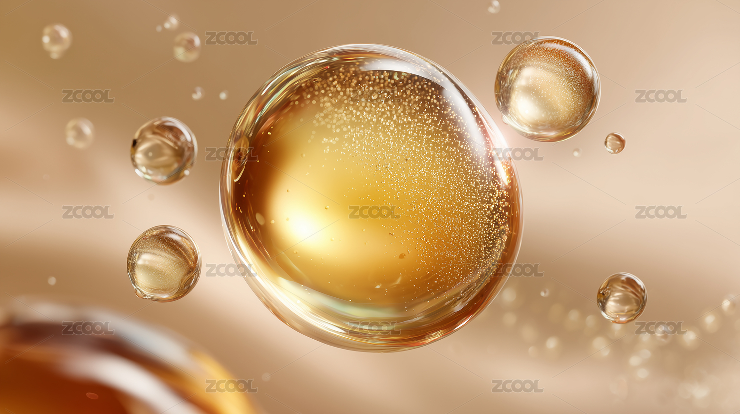 液滴,悬浮,金色,球形,透明,气泡,质感