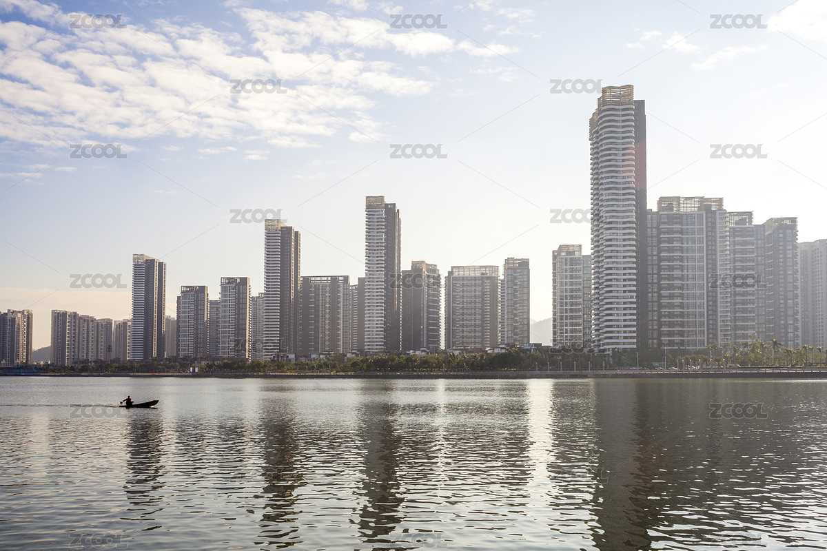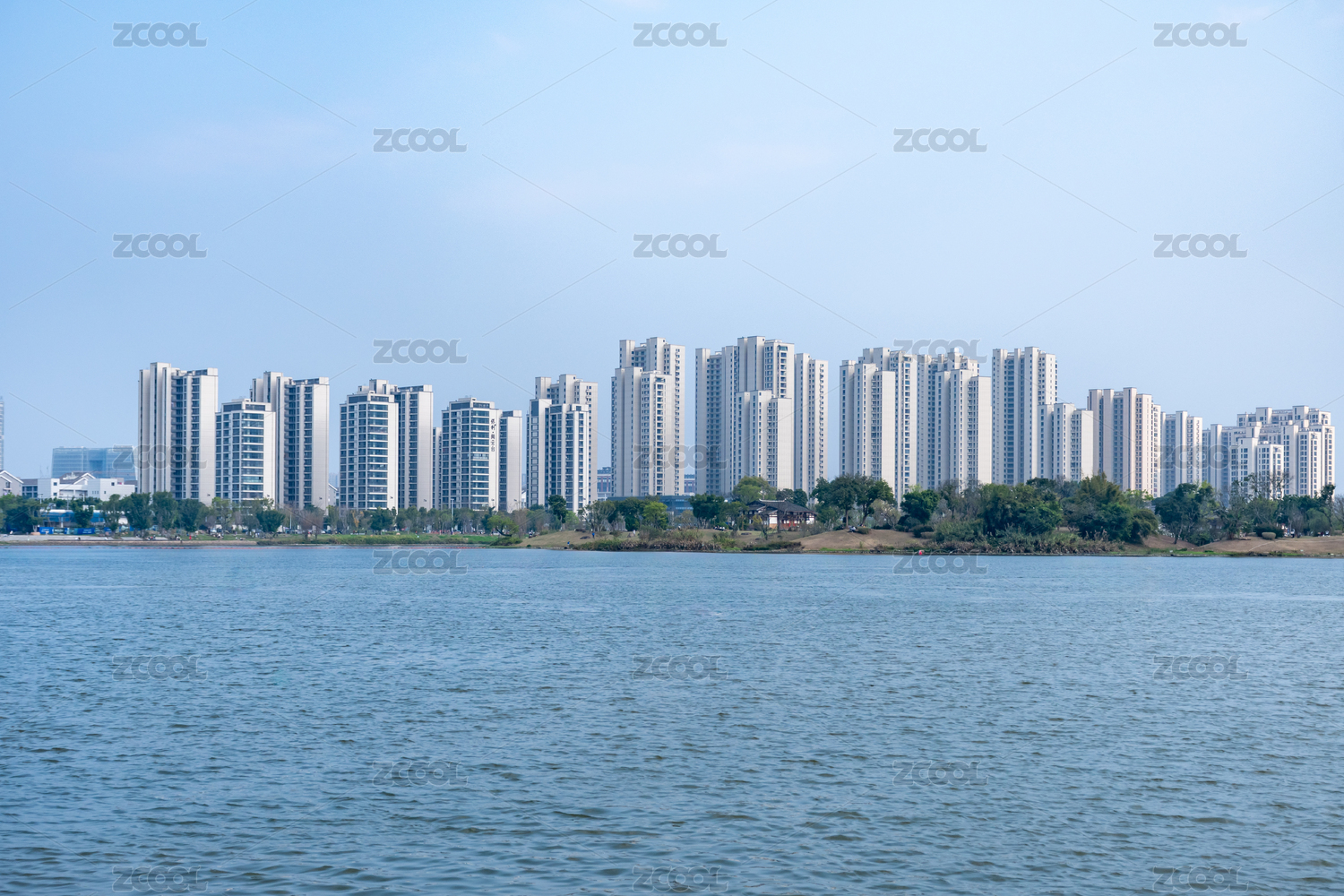 中国湖南省长沙市梅溪湖水岸密集的高层楼盘