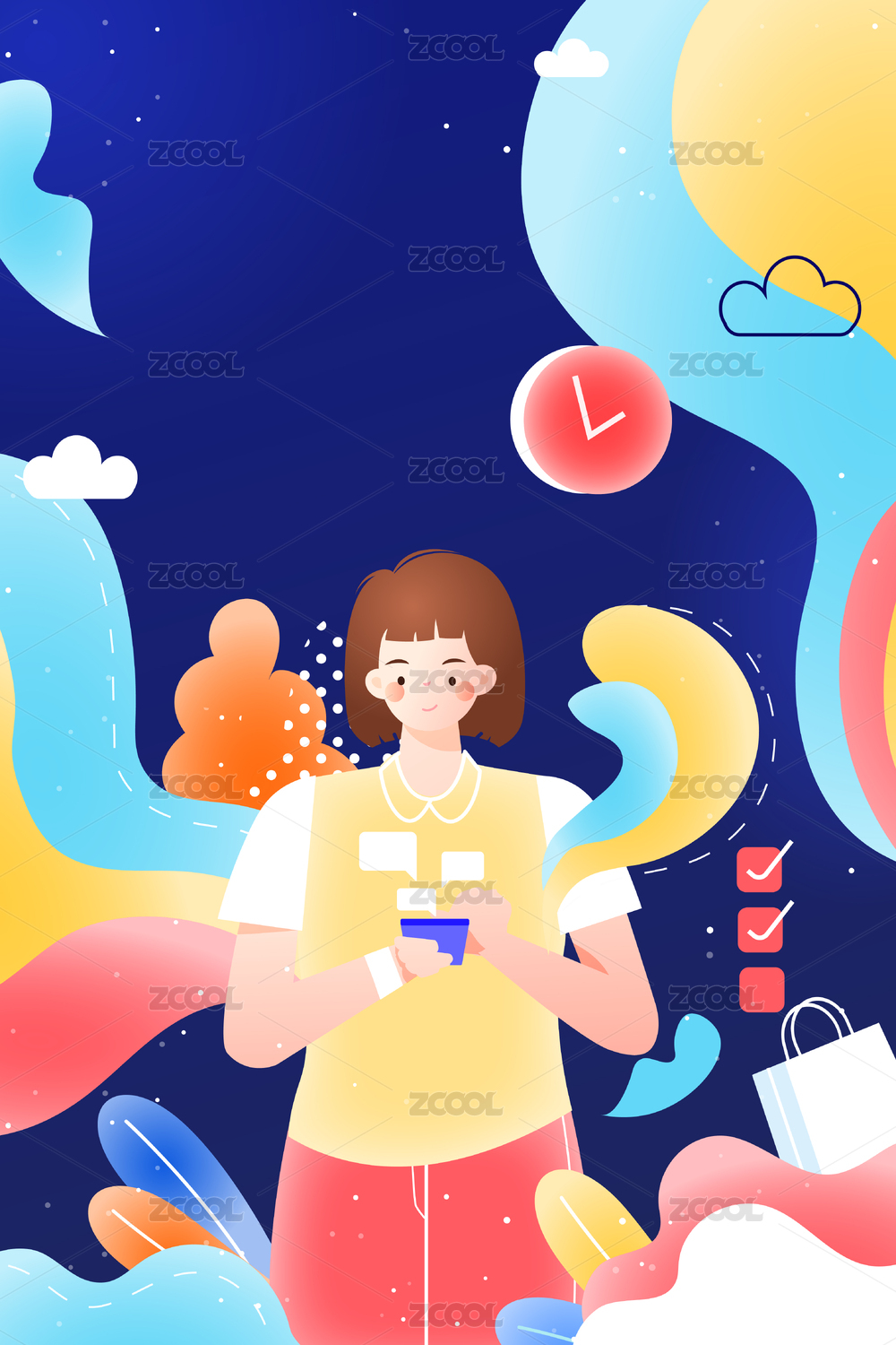 柔色,渐变,扁平,竖版,海报,人物,唯美,几何,购物,双十一