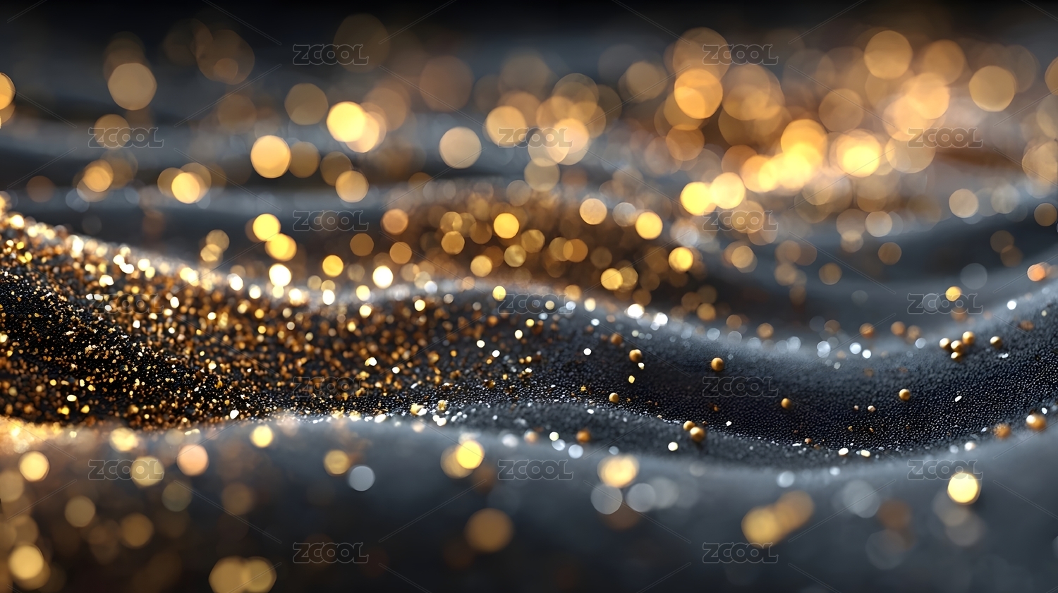 金色碎钻洒在深蓝色波浪纹背景上