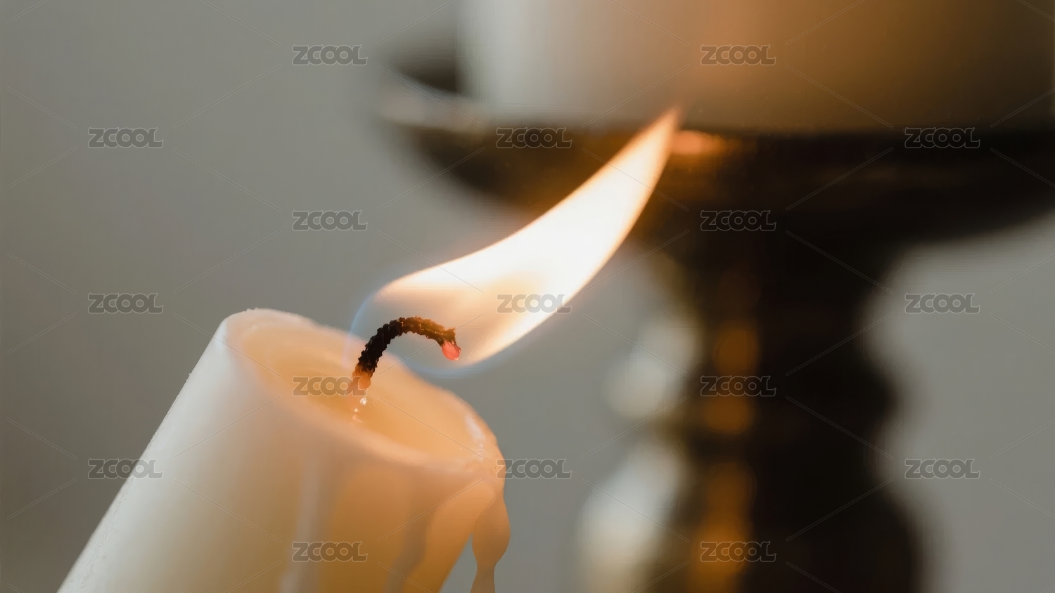 点燃的白色蜡烛特写