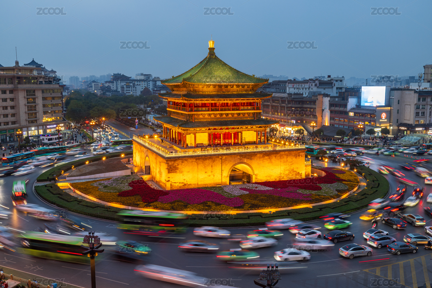 西安,航拍,高视角,蓝色,地标,建筑,天空,旅游,旅行,陕西