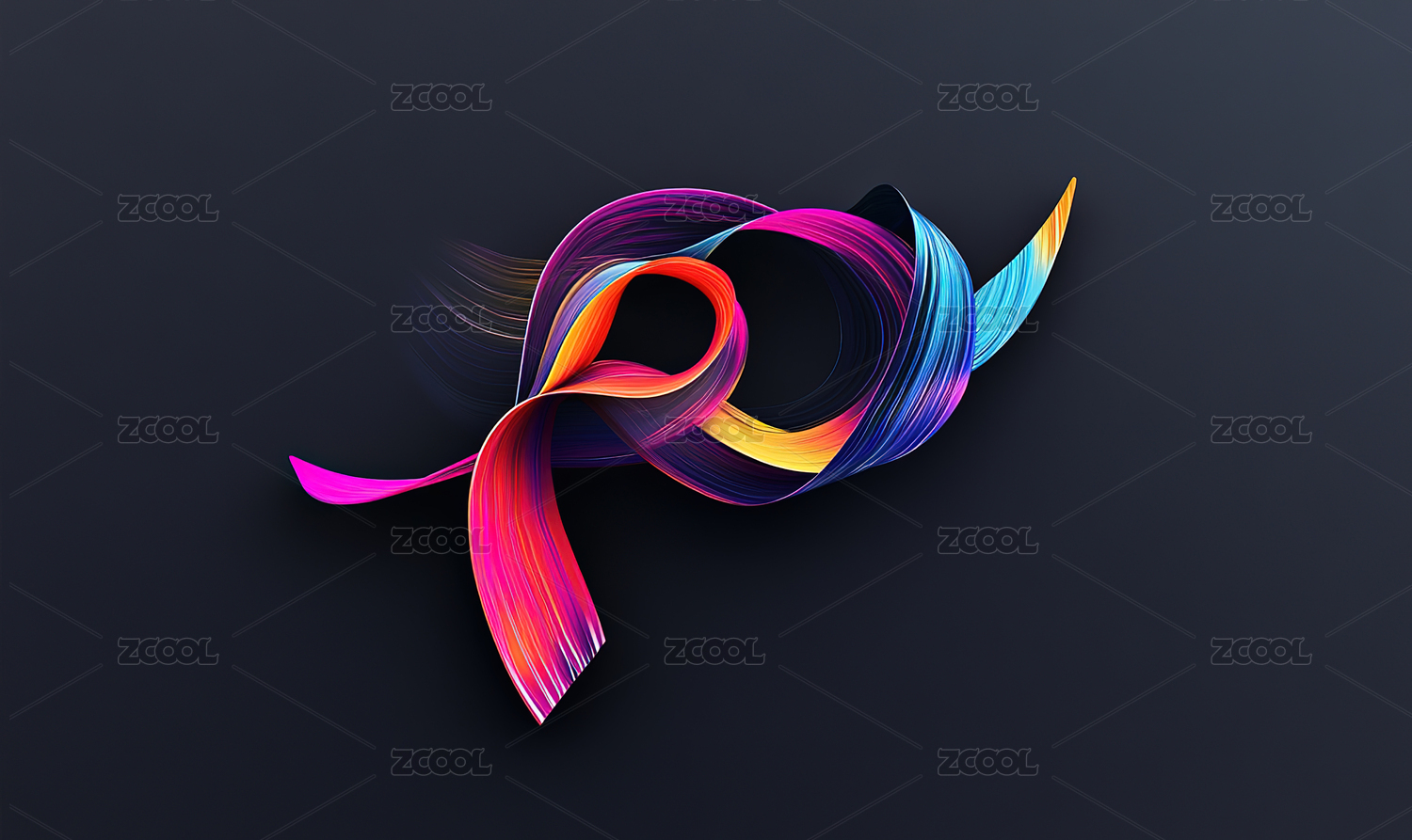 彩色透明荧光色缠绕晶体圆环3D赛博插画