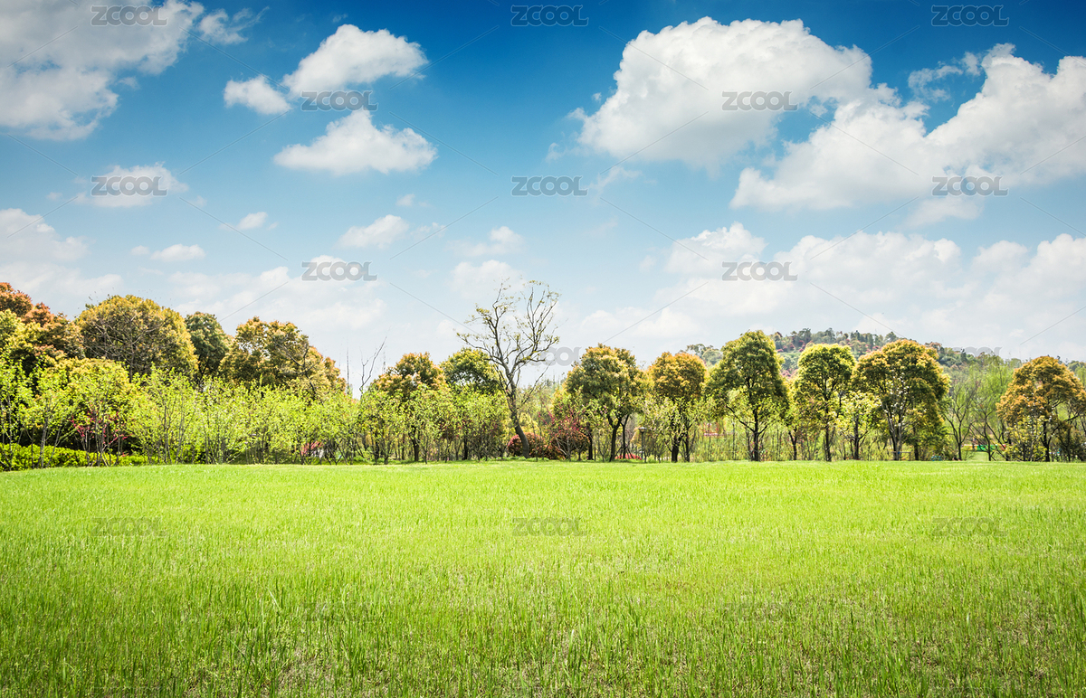 蓝天草地绿树林背景素材