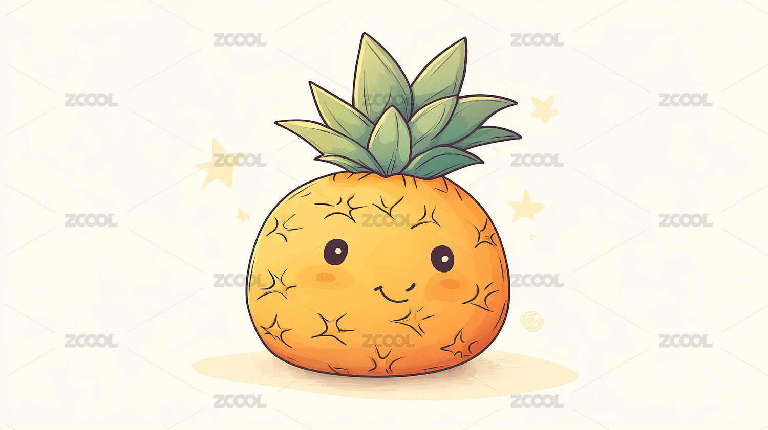 手绘卡通可爱菠萝插画素材