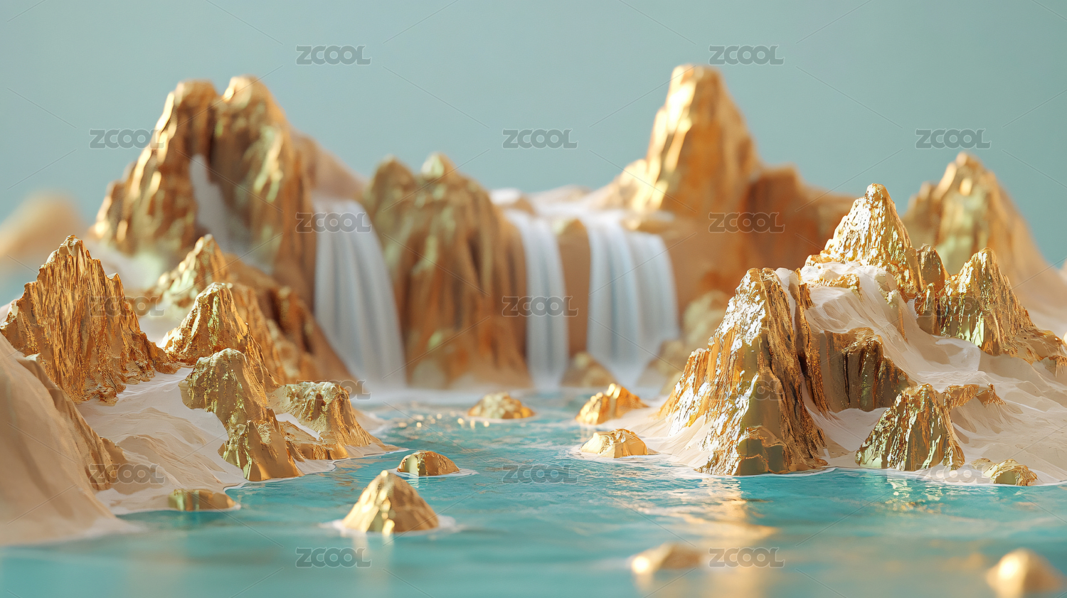 金色的山水地貌模型