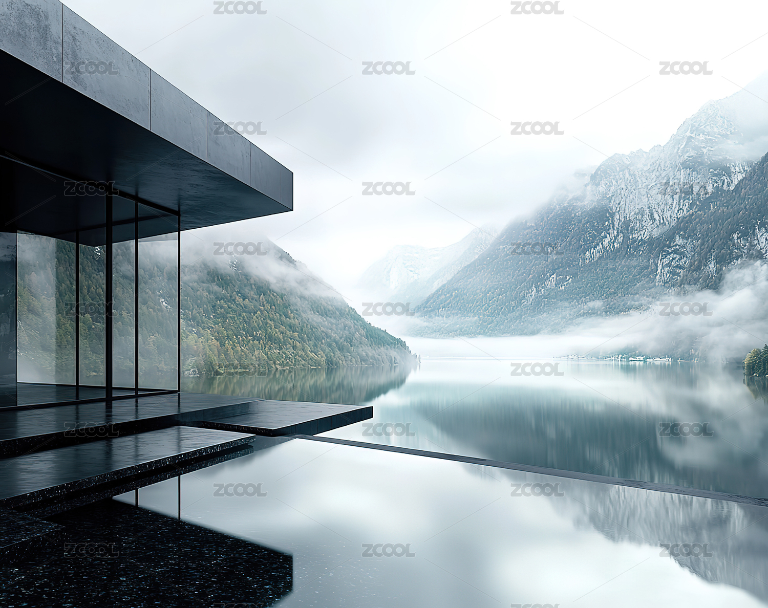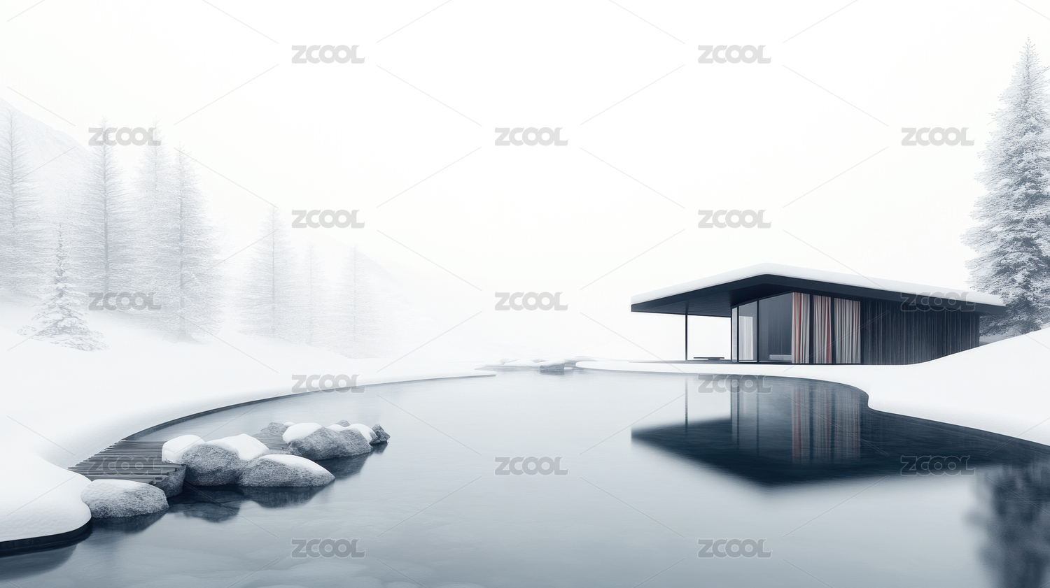 山脉,树木,线条,宁静,舒适,优雅,房屋,简约,平静,冬季