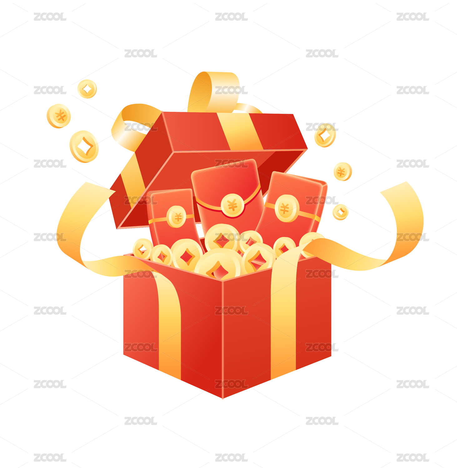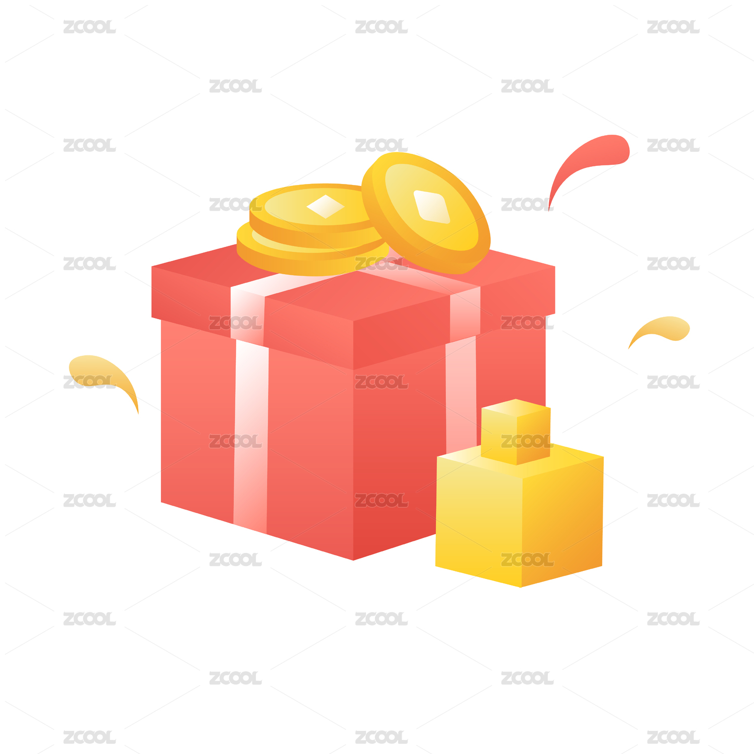 卡通礼盒促销抽奖互联网金融收益理财插画