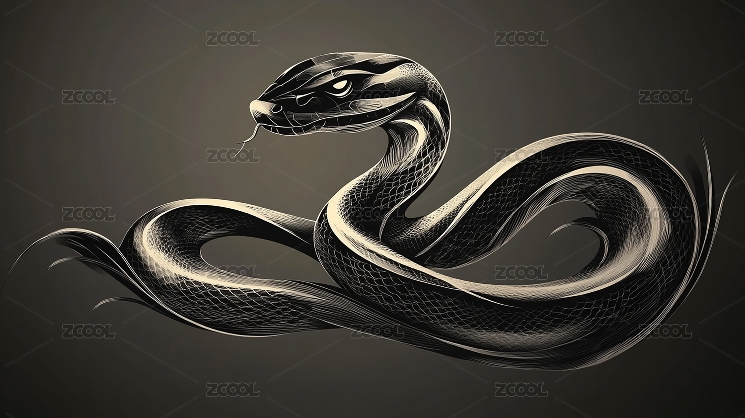 蛇年主题灵动缠绕的蛇壁纸插画艺术