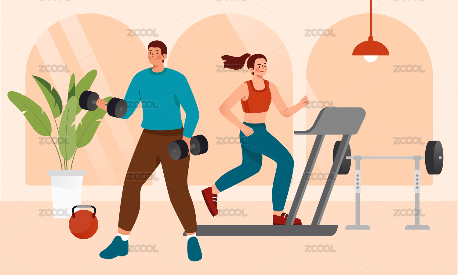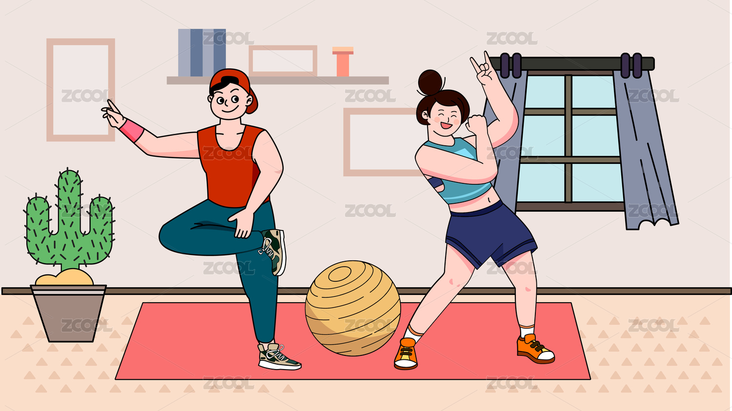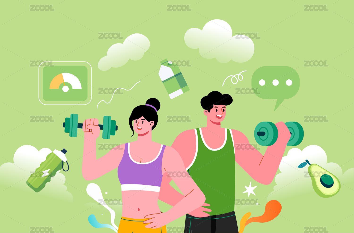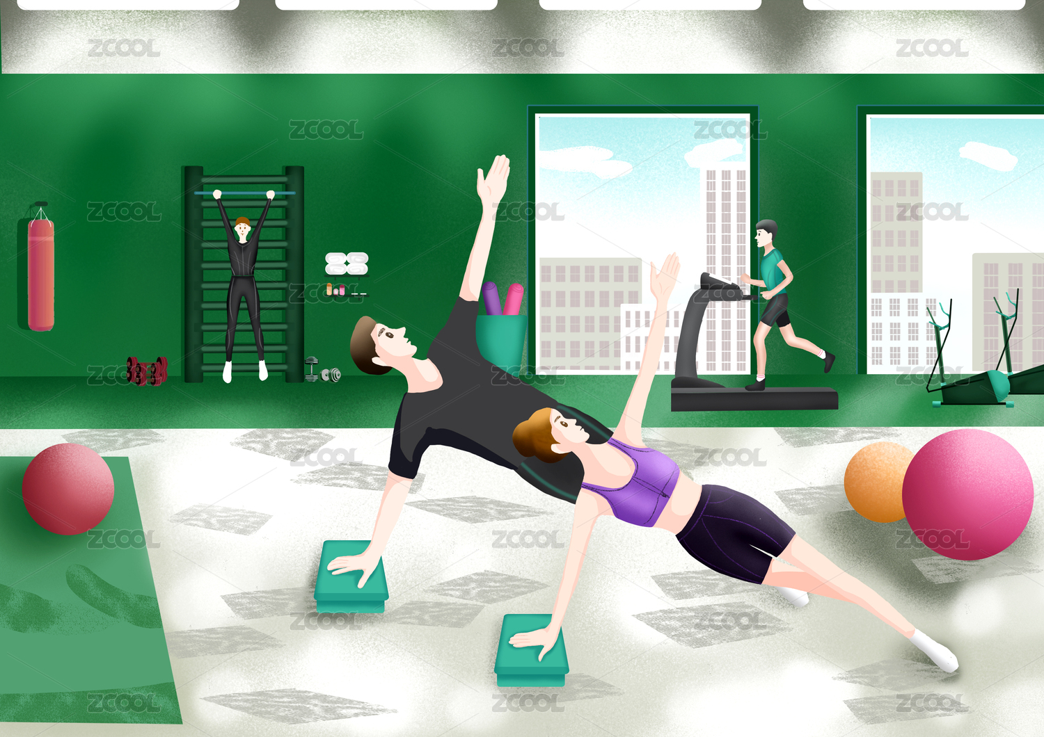 插画,背景,黑描,扁平,运动,健身,健康,美体,健美,塑性
