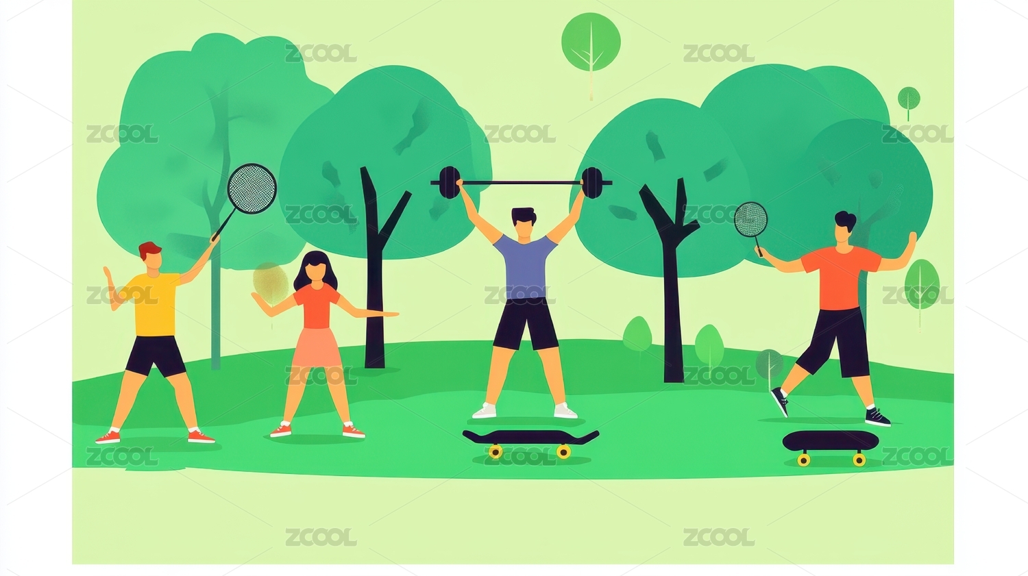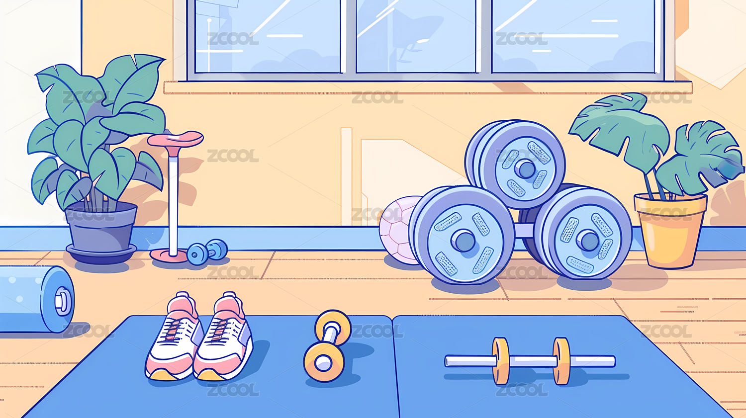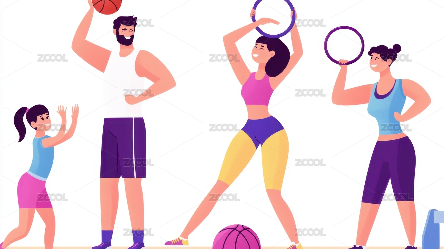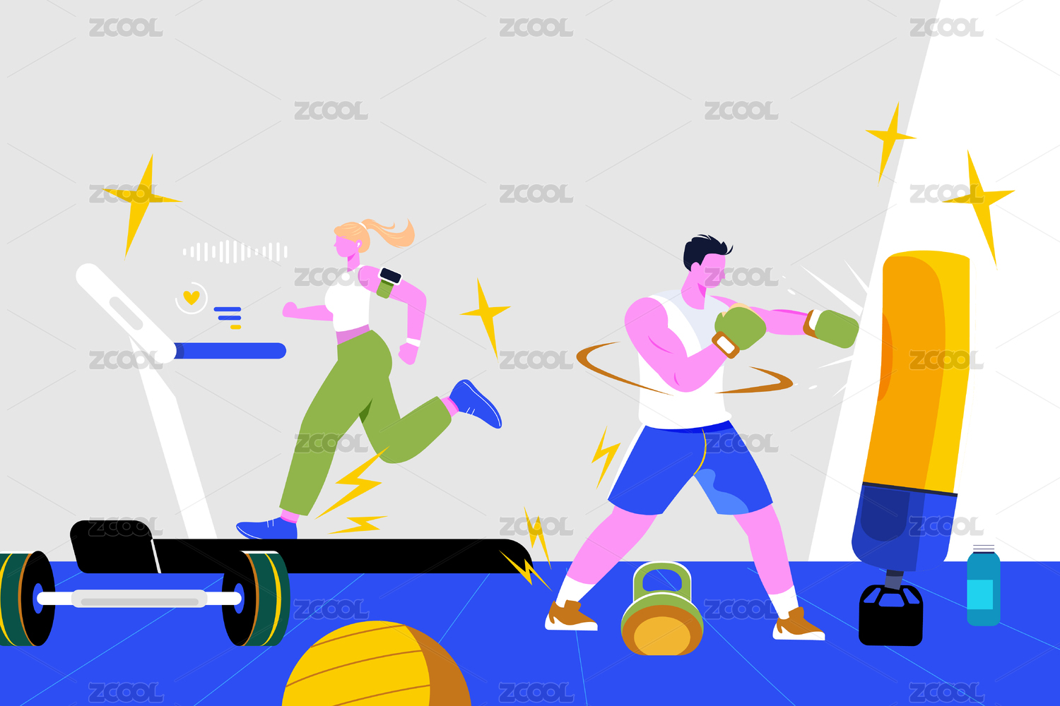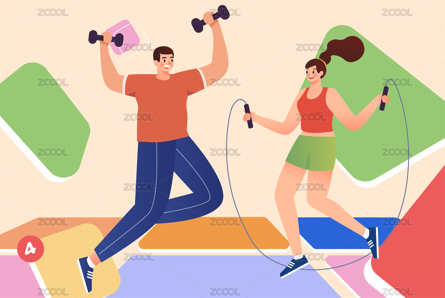 插画,背景,黑描,扁平,运动,健身,健康,美体,健美,塑性