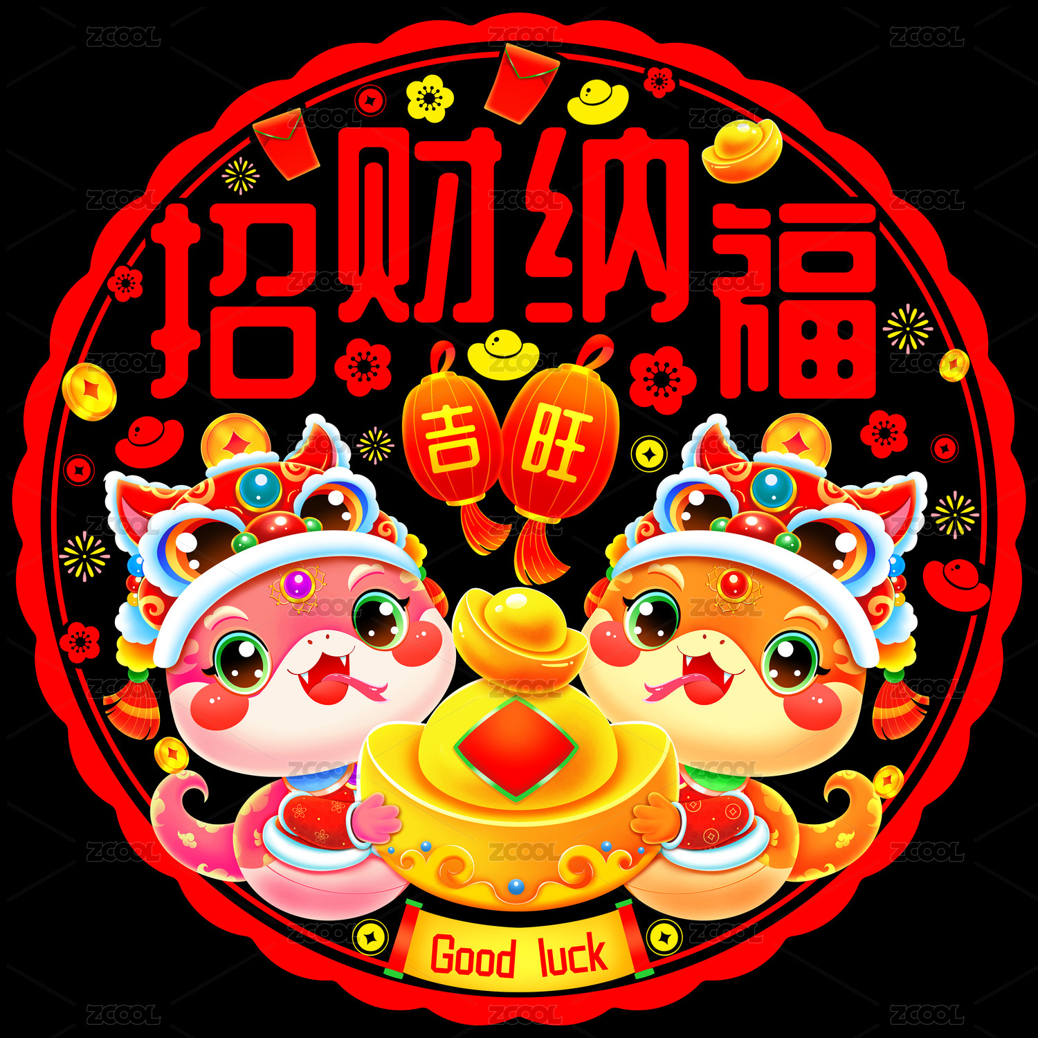 国潮,蛇年,春节,新年,蛇,生肖,年画,贴纸,静电贴,元素